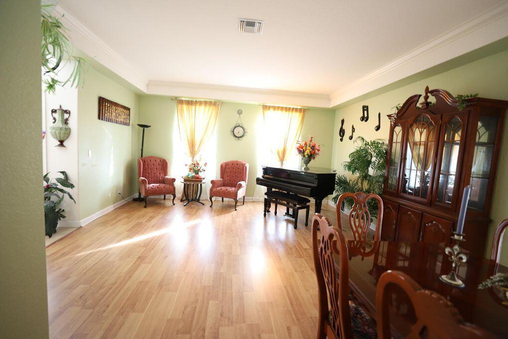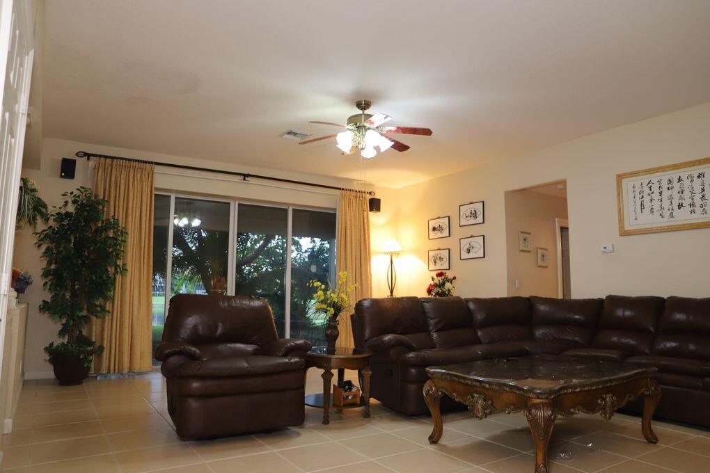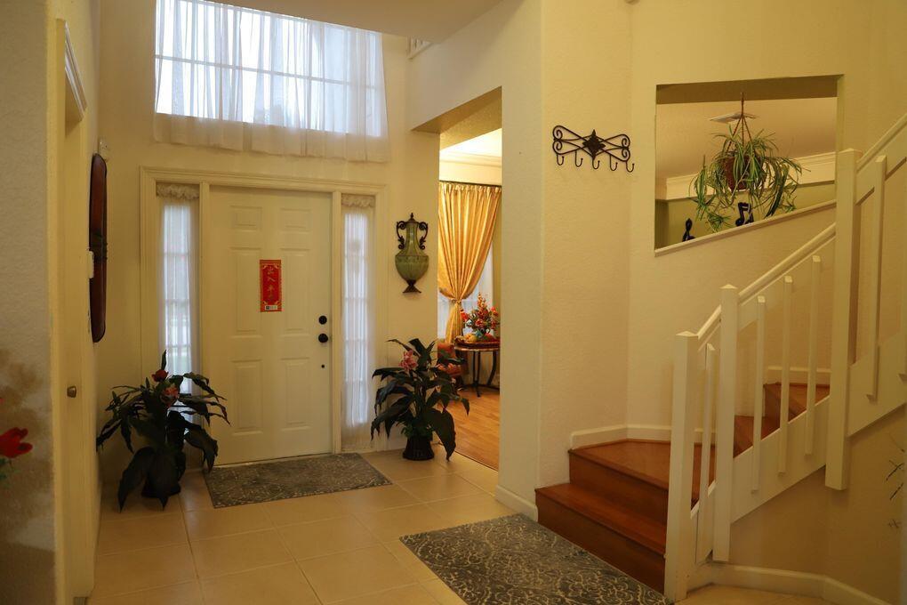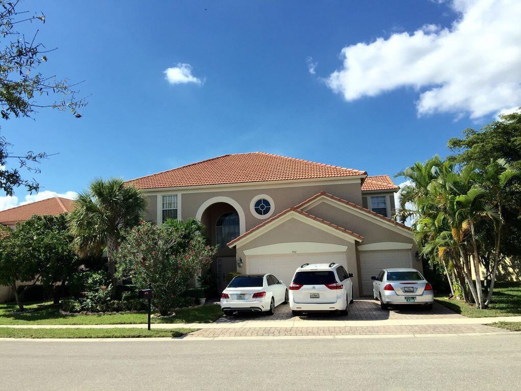 This beautiful house in gated community with community swimming pool, tennis courts and kids playground. Low HOA fee and gorgeous water fountain lake front. 5 bedroom, 4 bathroom, a total of 3,487 square feet under air; including a large game room (400 sqft), formal dining room. Living room and family room, downstairs one bedroom with a full bathroom. Kitchen with breakfast area, granite counter tops and center island. Huge master bedroom with a full bathroom and separate garden tub and shower. Covered patio more than 10 mature fruit trees. Almost 1/4 acre lot. 3 car garage with a driveway that fits 6 cars. Minutes drive to stores (Publix, CVS, Walmart and Home Depot), turnpike and 15 min to PBI airport. Walking distance to Grassy Water Preserve, elementary school and middle school.