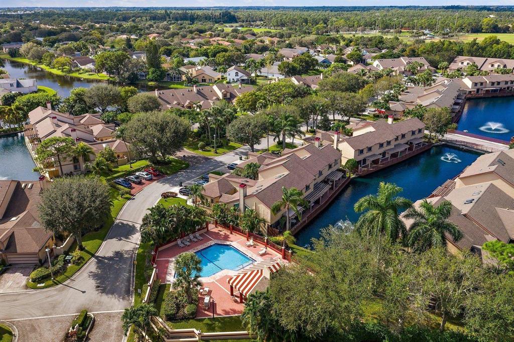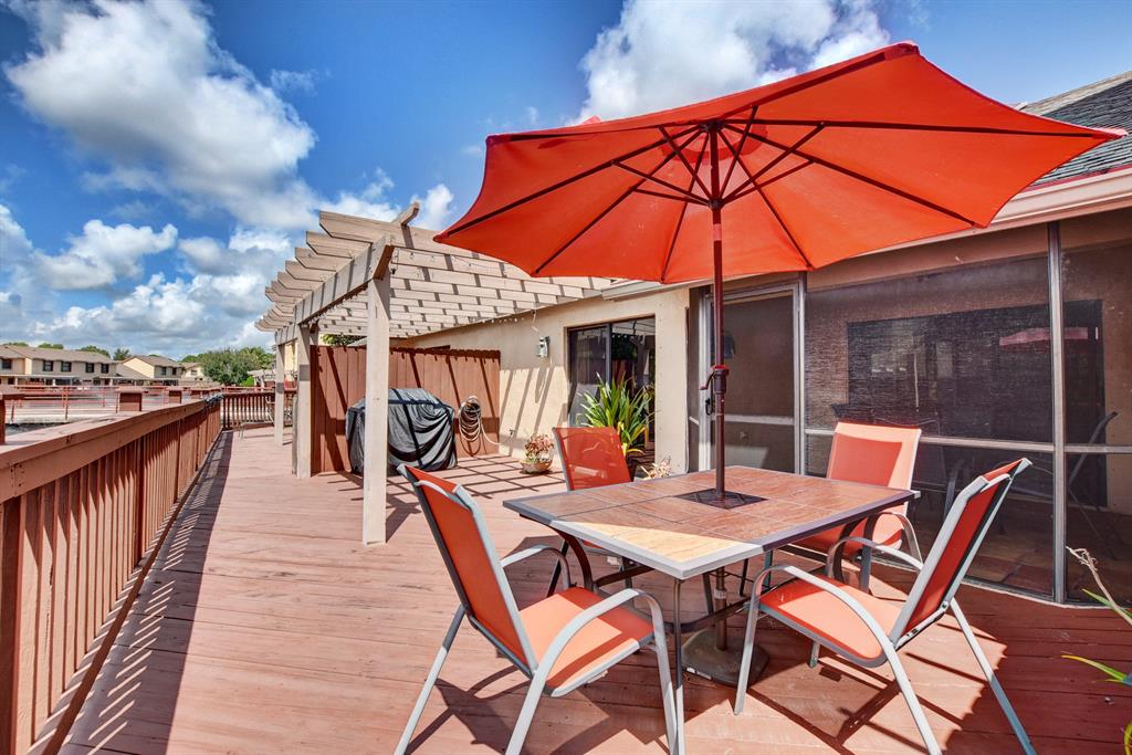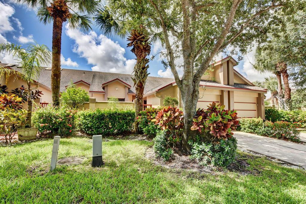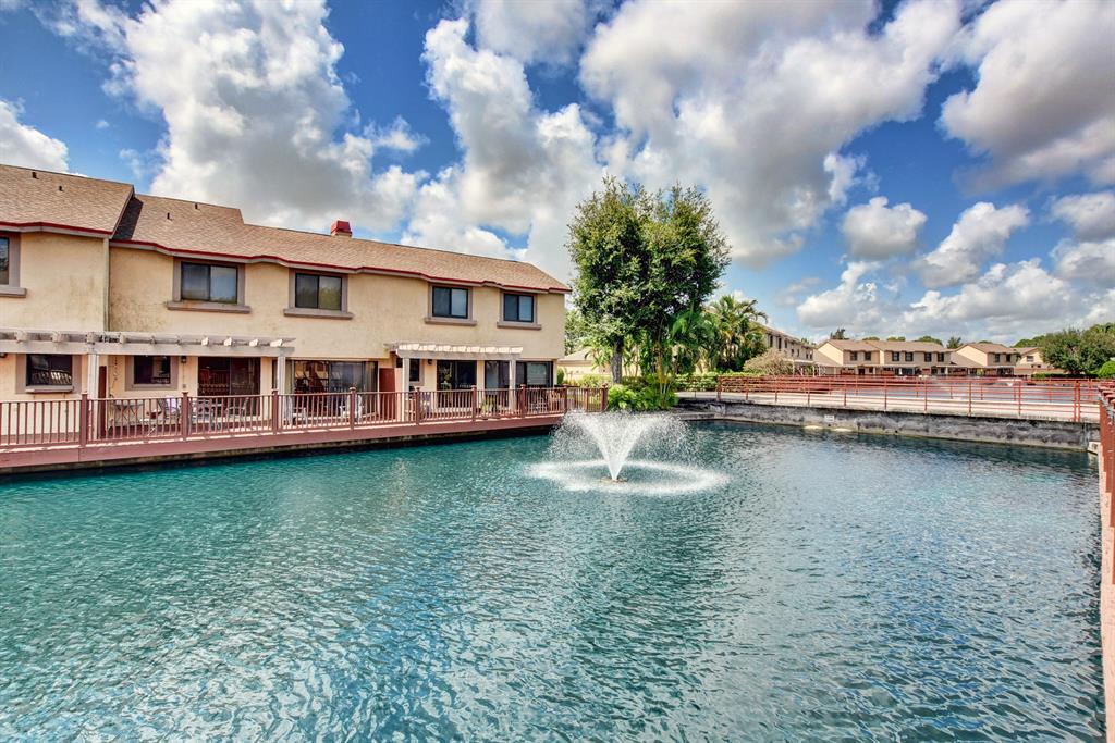 Beautiful water deck, one story townhouse, located in resort style gated community of River Bridge in short distance to Wellington Medical Facility, Wellington Green Mall, Lake Wort and West Palm Beach commerce, and near to PBI Airport. Home has one car garage with new (2021)dryer and washer, Vaulted ceilings, Spanish tile floors, great split floor plan, new refrigerator, repainted cabinets with Spanish style tiled countertops, wind impact sliders in living room. There is newer A/C unit (2018) water heater (2017), coded locks on front and garage door, two skylights in living room. Additional to covered patio there is large wooden deck for extra outdoor sitting overlooking the lagoon. River Bridge offers 2 community pools, 6 tennis courts, jacuzzi, GYM, clubhouse and much more ..
