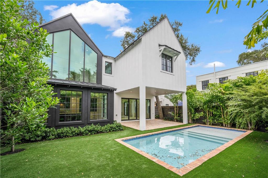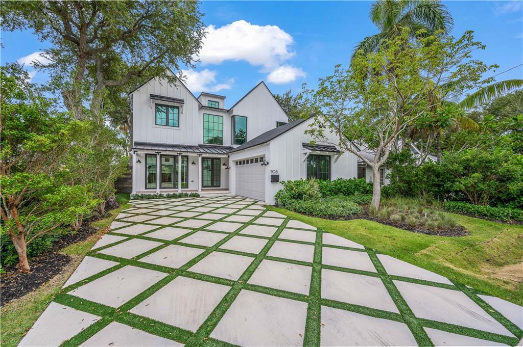 DESIGN MATTERS - Contemporary 5BR/5.5BA Farm House. A unique blend of modern and classic elements with finishes that include custom mill and tilework, hardwoods, quartz and marbles. Walls of windows and doors enhance the volume/vaulted ceilings throughout. The floor plan flows seamlessly from Great room to kitchen to the covered terrace. A 1st floor bedroom suite is ideal for guests or den. The primary suite boasts cathedral ceilings enhanced by a dramatic floor to ceiling arched window. There are two spacious walk-in closets and a bath that rivals any spa. three additional bedroom suites plus a laundry complete the second floor. The well landscaped, fenced yard has a pool with sun ledge. [Information is from 3rd party sources including BCPA and is believed accurate but not warranted].