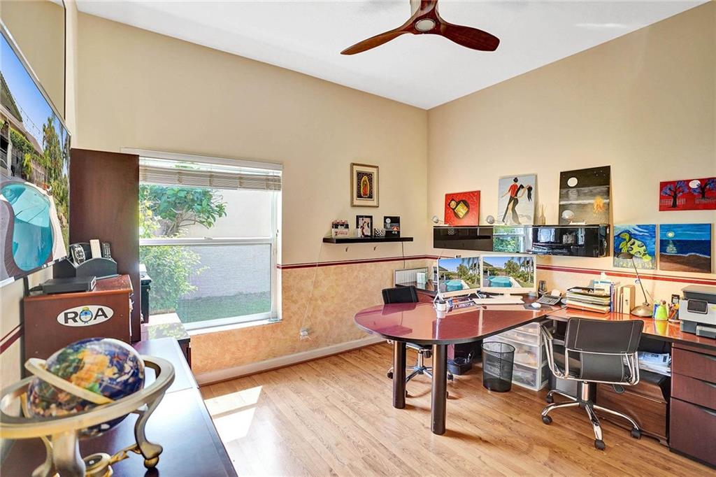 This Amazing home is ready for you, located in a desirable gated neighborhood, consist in a 5 bedroom, 3 bathrooms, 3 car garage, water view, with a beautiful Pool recently re-finish includes a salt chlorination system , this is the Corsica model, one story biggest house in Pelican Isle. Modern kitchen feature exquisite granite countertops, tile glass back splash, Stainless steel appliances and a wine cooler. The family room includes a built-in furniture with a 75 in. Sony TV, and a bar with a refrigerator. Furniture are negotiable. Both AC Units are 2017. This is a triple split bedrooms, 5 bedroom is being use as an office with no closet. Bathrooms 2 and 3 were remodeled. HOA takes care of your lawn, irrigation, and common areas.