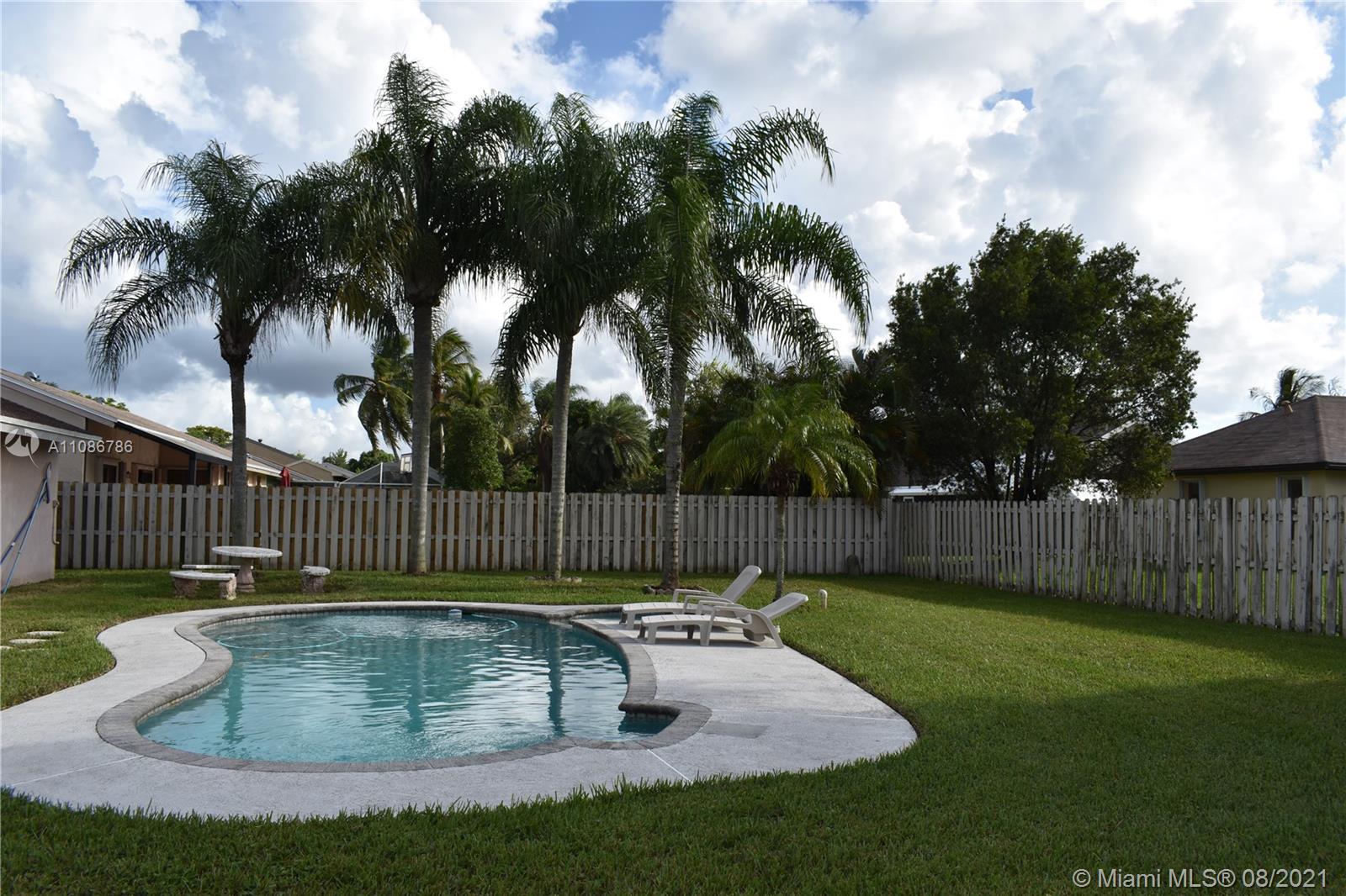 4/2 home located in the beautiful neighborhood of Shenandoah. Great family home with low HOA fees. Community has its own park. There is easy access to highways and shopping. This is a pool home with an oversized backyard. All windows and doors covered with accordian hurricane shutters. Home is in need of a remodel! come make this your dream home.