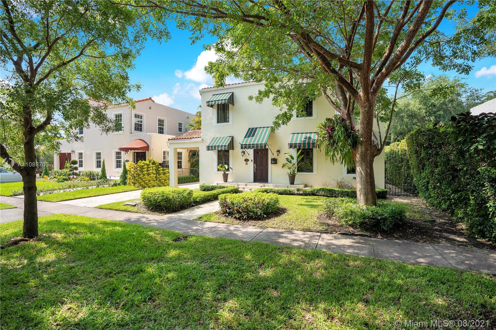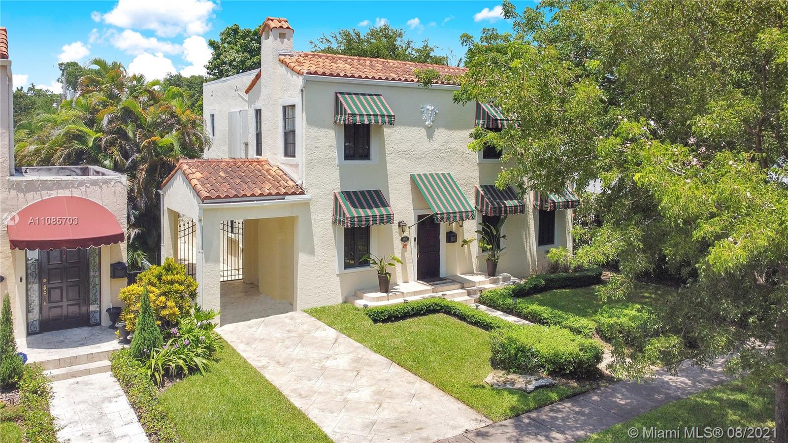 Gorgeous landmark Coral Gables Old Spanish on historic Obispo Avenue. Home underwent extensive renovations (2015-2020) providing all the modern comforts such as an open kitchen (w/quartz counters) adjacent to the family room for more practicality, plenty of closet space, updated electrical & plumbing, roof, updated bathrooms, impact windows/doors & accordions, polished original wood flooring, limestone floors, & painting. Home has 3 bedrooms / 3 baths, plus a detached 1/1 guest cottage. All three bedrooms upstairs; Master bedroom faces the backyard & has a large walk-in closet & beautiful master bath. Deep lot w/7,500 SF & plenty or room for a pool. Close proximity to golf/tennis & downtown Coral Gables w/fine dining, shopping, entertainment as well as a short drive to MIA Intl. Airport.