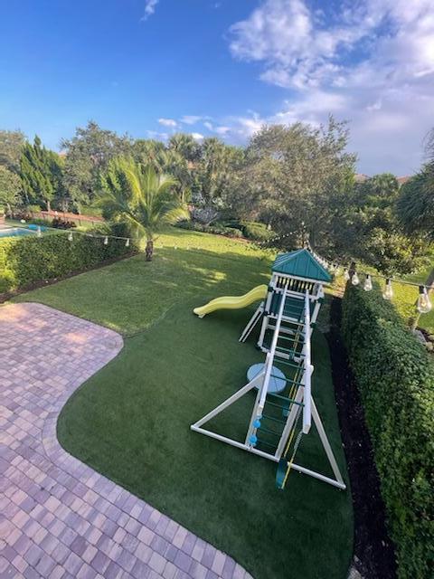 Immaculate open and bright home in the heart of Parkland. One of the rare gems that is even more beautiful in person! 5 Bedrooms, 4 full bathrooms One bedroom on the first floor-perfect for guests, playroom, home office/gym. Relaxing balcony off owner's suite overlooking the waterfall & private backyard with mature landscaping. Beautiful white cabinetry throughout. All hurricane impact doors and windows. Extended patio w/relaxing waterfall views perfect to enjoy Florida's paradise lifestyle. Custom swingset on turf. Both A/Cs less than one year old. Amazing schools, beautiful neighboring parks, PGCC's premier amenities: Golf&Sports Clubs, Pools,Tennis,Childcare center,basketball,pickleball & onsite restaurants,unsurpassed events. Parkland Golf is resort living style with no equity required