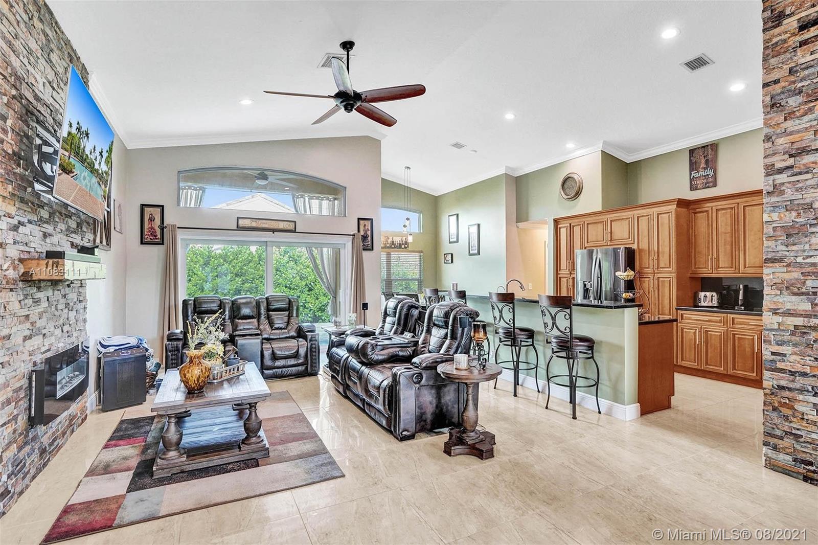 A house designed with pure joy and entertainment in mind! Rarely available in the prestigious west Pembroke Pines community of Encantada. Split floor plan with an open concept featuring 4 bedrooms, 3 baths, and a large den. COMPLETELY REMODELED interior with an endless list of upgrades such as Impact windows, new Trane A/C installed in 2019, new LG appliances (warranty until 2023), built-in wine cooler, functional fireplace, Rainsoft water purification system, Nest Thermostat, Lutron App controlled lighting, and much more (too much too list). The exterior features an incredible Paradise Grill Tiki Bar, travertine flooring, and lush landscaping providing privacy. Community clubhouse features a pool, gym, kid play area, sand volleyball, basketball court, tennis court, and more.