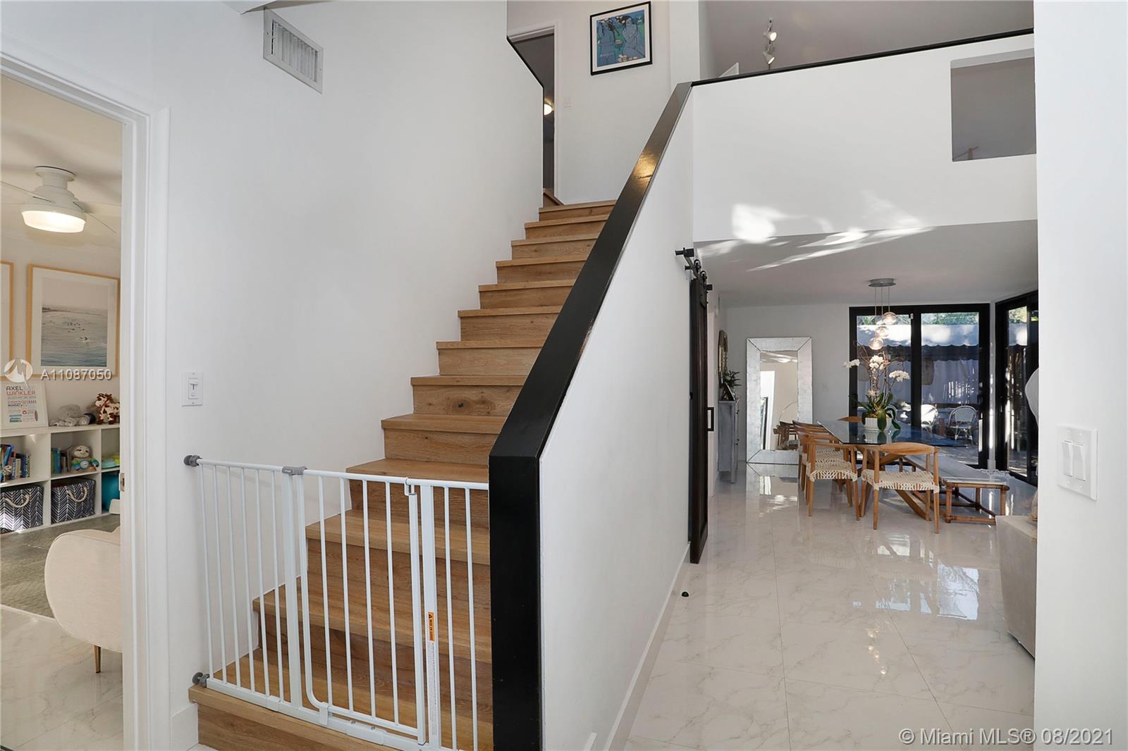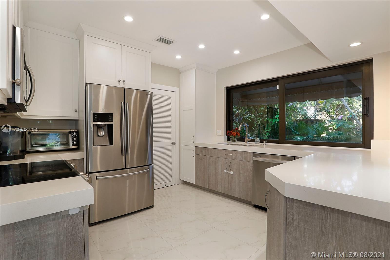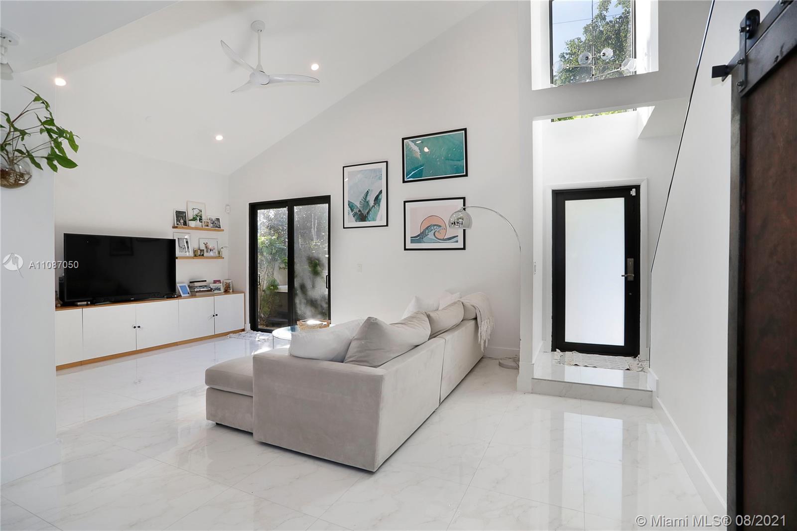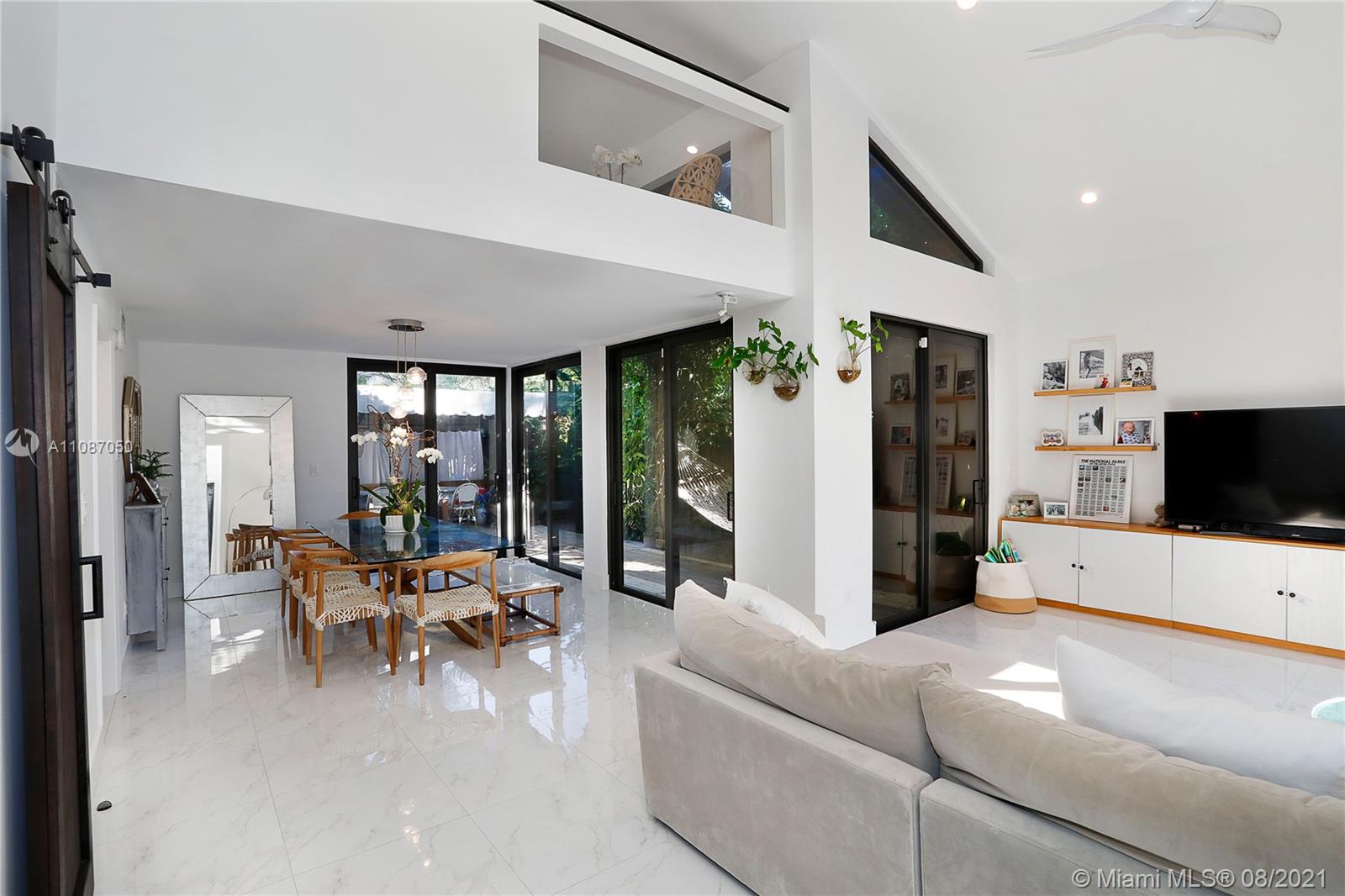 Fully updated contemporary Coconut Grove 3/2.5 bath home on quite ‘no through traffic’ Street, PLUS A BONUS LOFT SPACE! This North Grove home is built around a 100+year old Oak tree & features volume ceilings, gorgeous wood floors in bedrooms and porcelain tiled floors in living area, w/high impact windows & doors throughout! Bedroom with fully remodeled bathroom located on the 1st floor. Upstairs; 2 bedrooms w/remodeled Jack & Jill bathroom. Loft currently being used as a 4th bedroom, but is ideal as a kids playroom or office. Separate laundry room off kitchen w/storage space. There are 3 patio spaces which include a Jacuzzi hot tub and pergola for entertaining. Flood zone ‘X’. Come see this pristine turn key home!