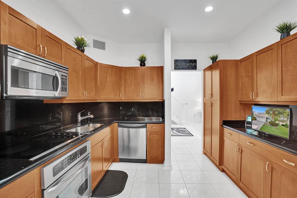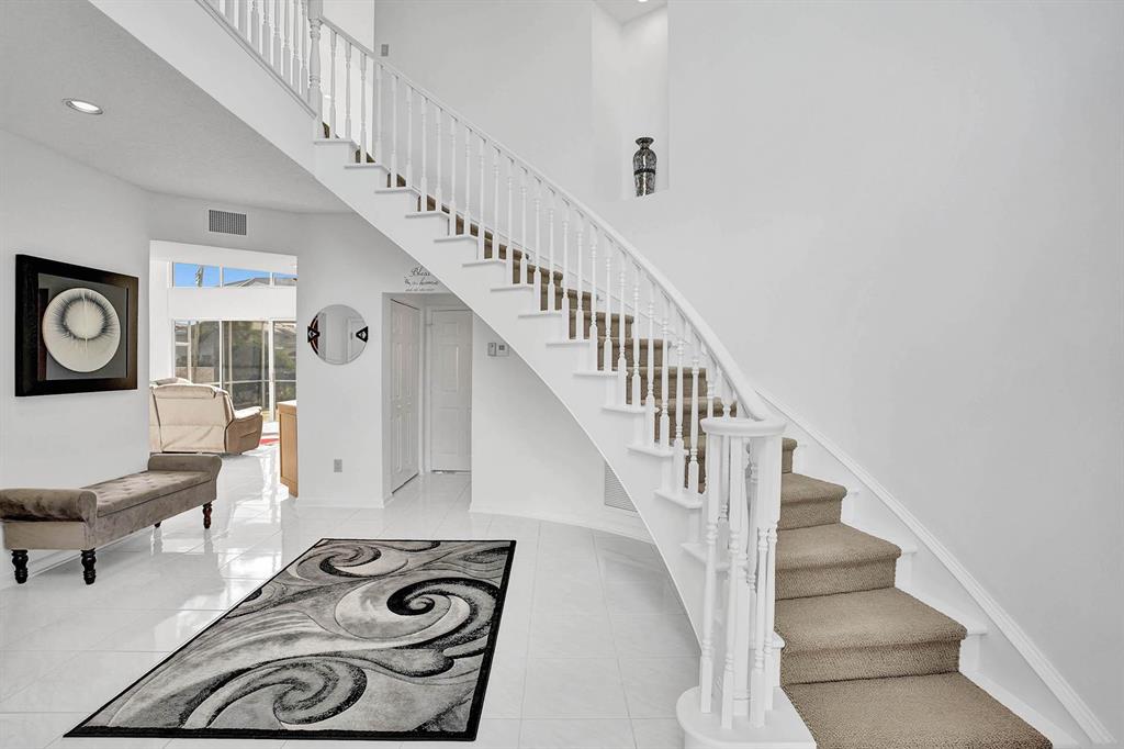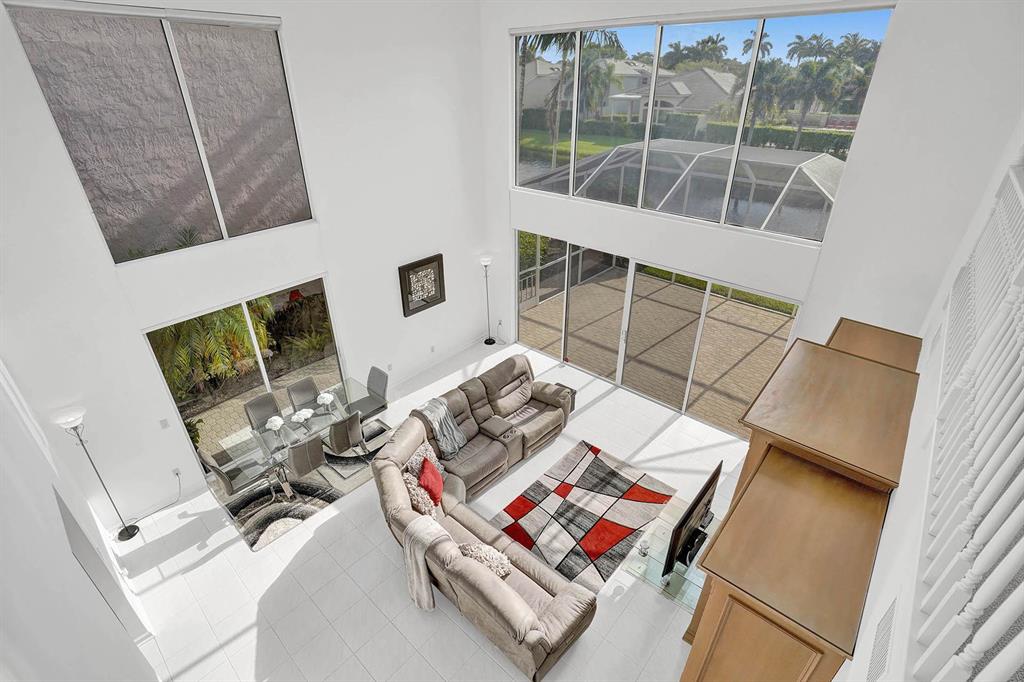Beautiful two-story residence located on a lake in the desirable gated community of The Palms at Boca Pointe in central Boca Raton within an A-Rated School District. This 3 bed / 2.5 bath home features a spacious open floor plan, soaring volume ceilings, tile flooring and has been recently painted throughout. The home welcomes you into the impressive foyer with grand sweeping staircase and tons of natural light. The dine-in kitchen features custom wood cabinetry, granite countertops, stainless steel appliances, built-in office nook, and recessed lighting. The spacious family room is the real gem of this home with double-height volume ceilings and views through the sliding doors to the patio and lake beyond.