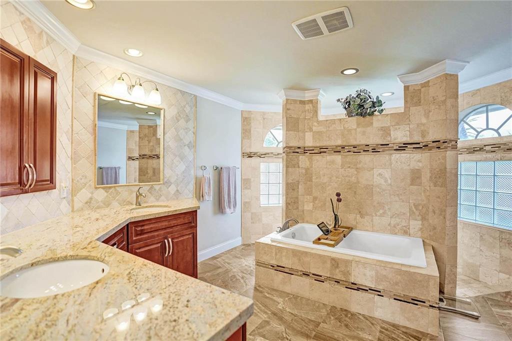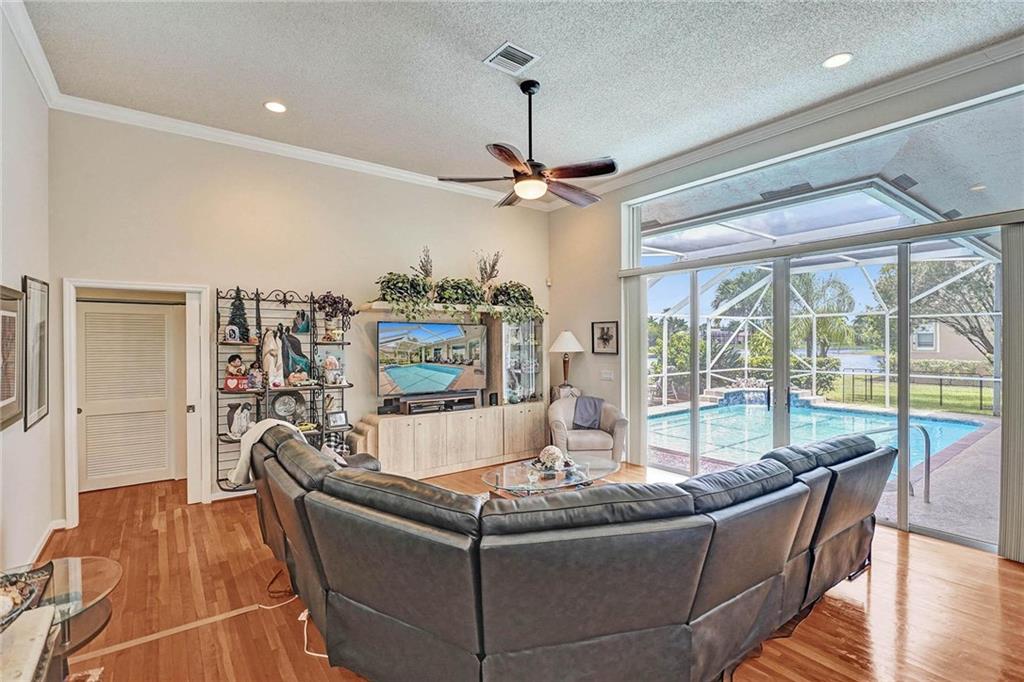 Welcome To Your Dream Home! This Pristine Estate Boasts Picturesque Water Views From The Moment You Step Inside The Double Front Doors. Volume Ceilings W/ Crown Molding & High Hats Throughout Show The Meticulous Detail Of Owner's Pride. Stunning Kitchen Remodel Includes Soft-Close Cabinets, Cooktop, Wall Oven & Convection/Microwave. Triple Split Floorplan. The Master Wing Complete With Separate A/C, Two Walk-In Closets & A Spectacular Spa-Inspired En-Suite W/ Dbl Vanities, Jacuzzi Jetted Tub & Spacious Pass-Through Shower. One Of The Large Bedrooms Comes With A Sizeable Den Perfect For An Office Or Mother-In-Law Area w/ En-Suite Leading Out To The Tranquil Waterfall Featured Salt-Chlorinated/ Heated Pool. Custom Trex Deck. Roof, Diamond Brite, Exterior Paint ALL Done in 2019!