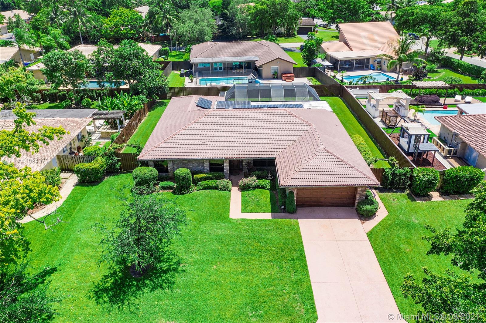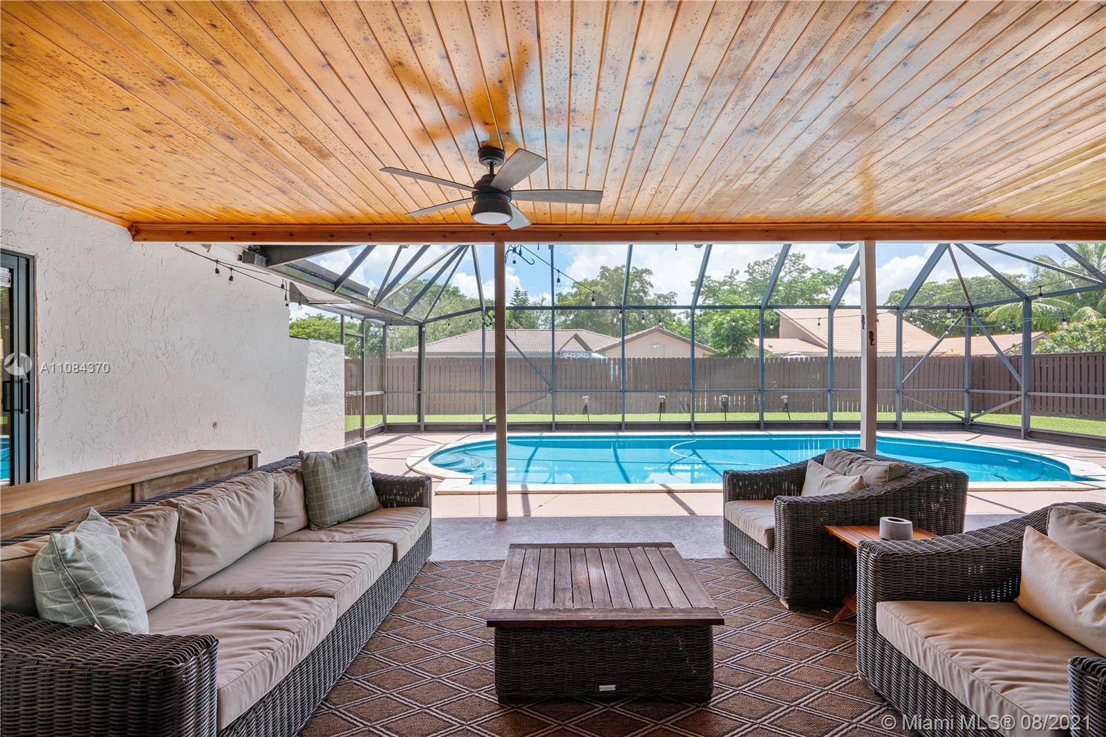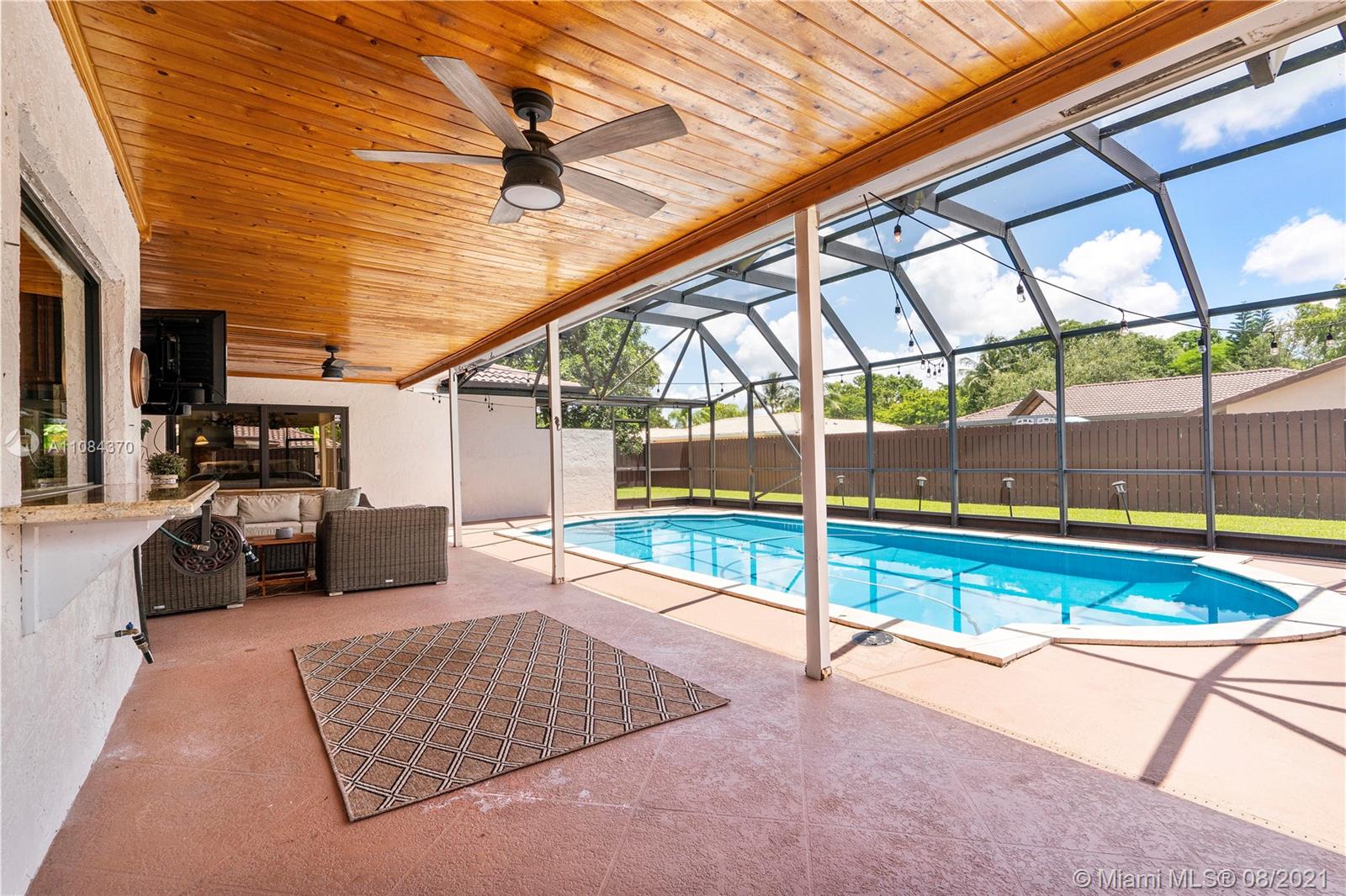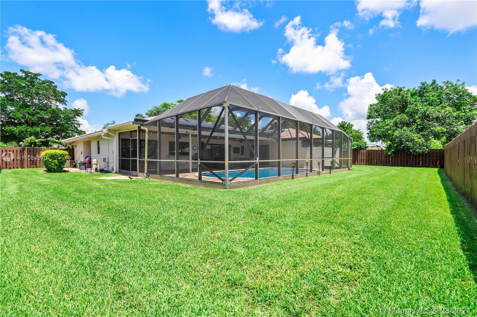 Wow! 4-Bed, 2-Bath Pool Home On An Oversized Fenced Lot In Prestigious Oak Wood Coral Springs With Beautiful Custom Upgrades. Large Chef's Kitchen W/Wood Cabinets, Granite Counters/Backsplash, Pull Outs, SS Appliances, Cooking Island & Recessed Lighting. Vaulted Ceilings. Wood Plank Tile Floors In Common Areas. Plenty Of Living/Dining Space Off The Kitchen. Expansive Master Suite W/Walk-In Closet, Sliding Door Access To Pool & Bath With Dual Sinks, New Finishes & Large Glass Enclosed Shower. Additional Spacious Bedrooms. Cabana Access Hall Bath Has Tub/Shower & Lots Of Storage. Screen Enclosed Patio/Pool Area Has Outdoor Lighting/Fans & Wood Plank Ceilings. Fenced Yard With Lush Landscaping. 2-Car Garage. Laundry Room W/Storage. Dual-Zone AC. Pool Rebuilt 2018. New Plumbing 2020. Must See!