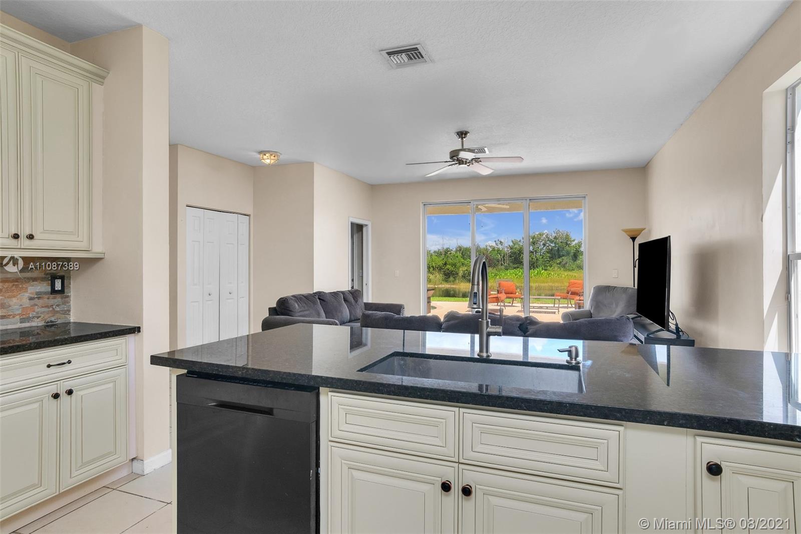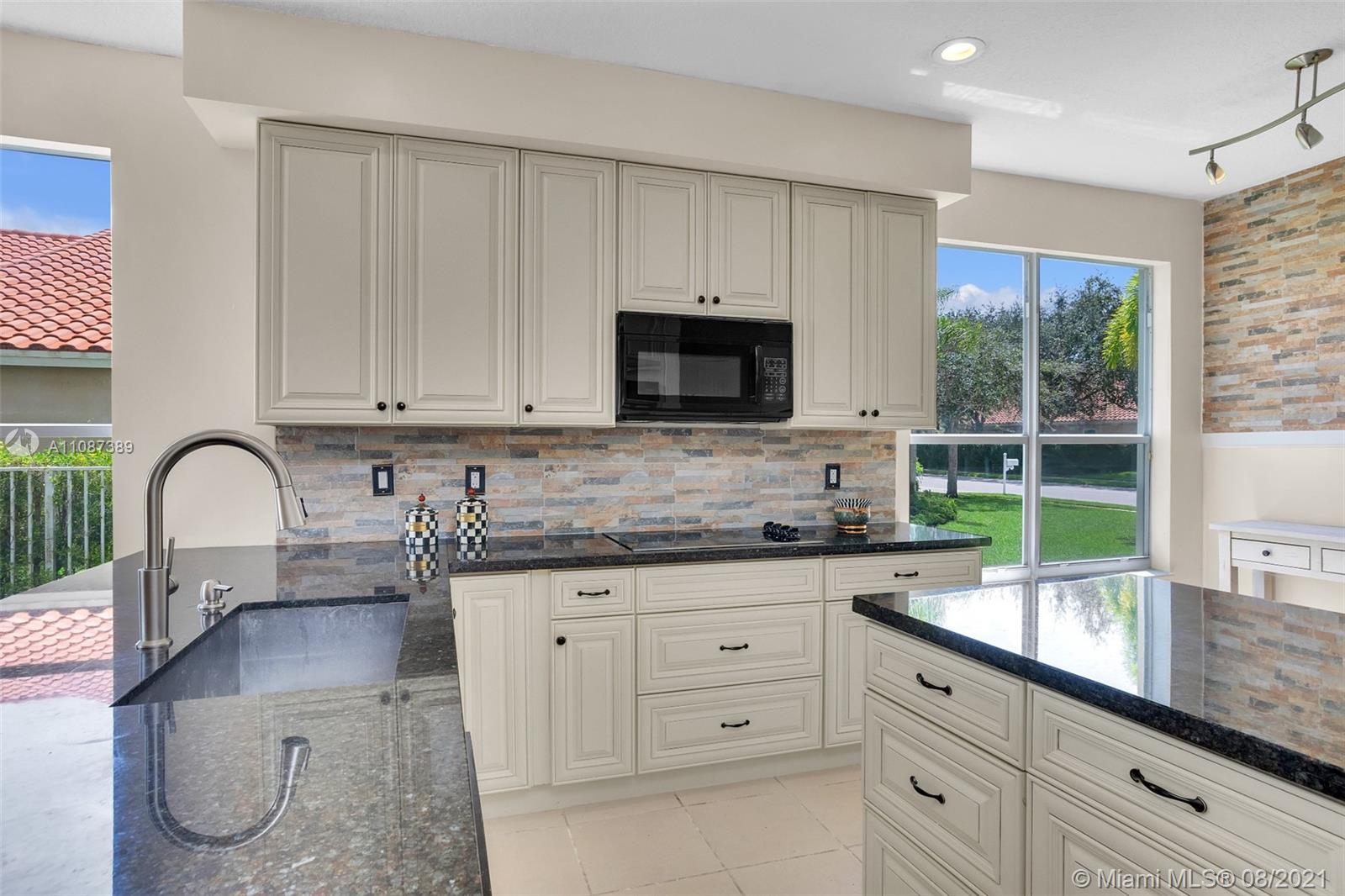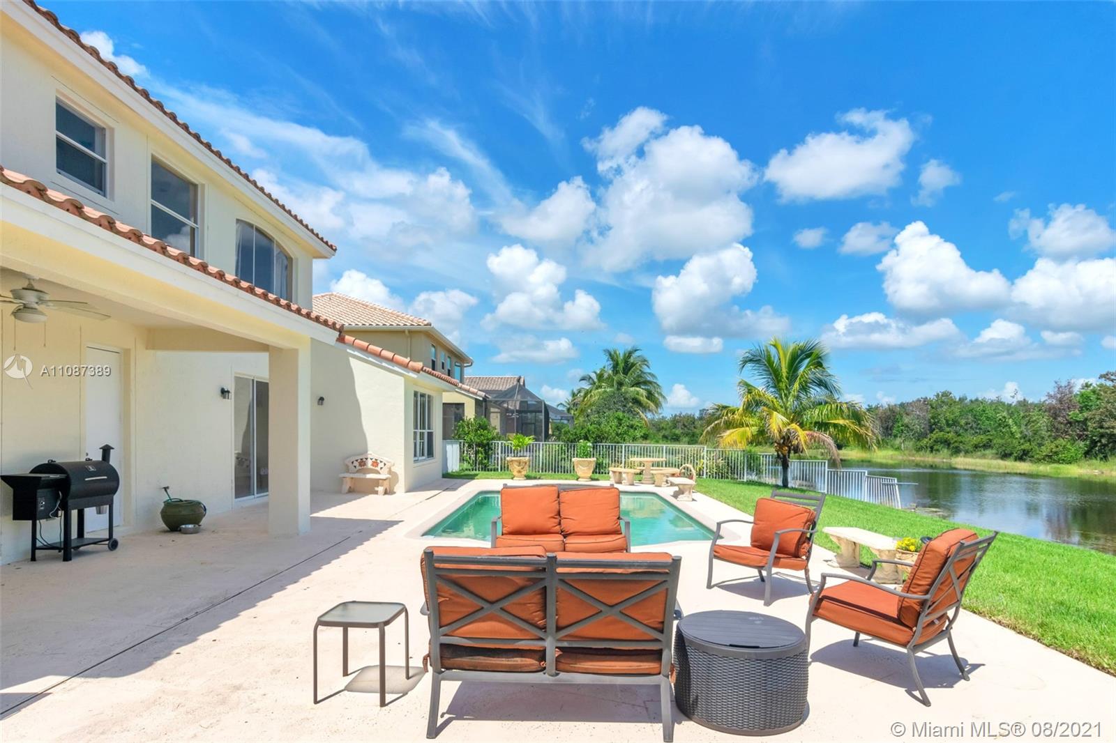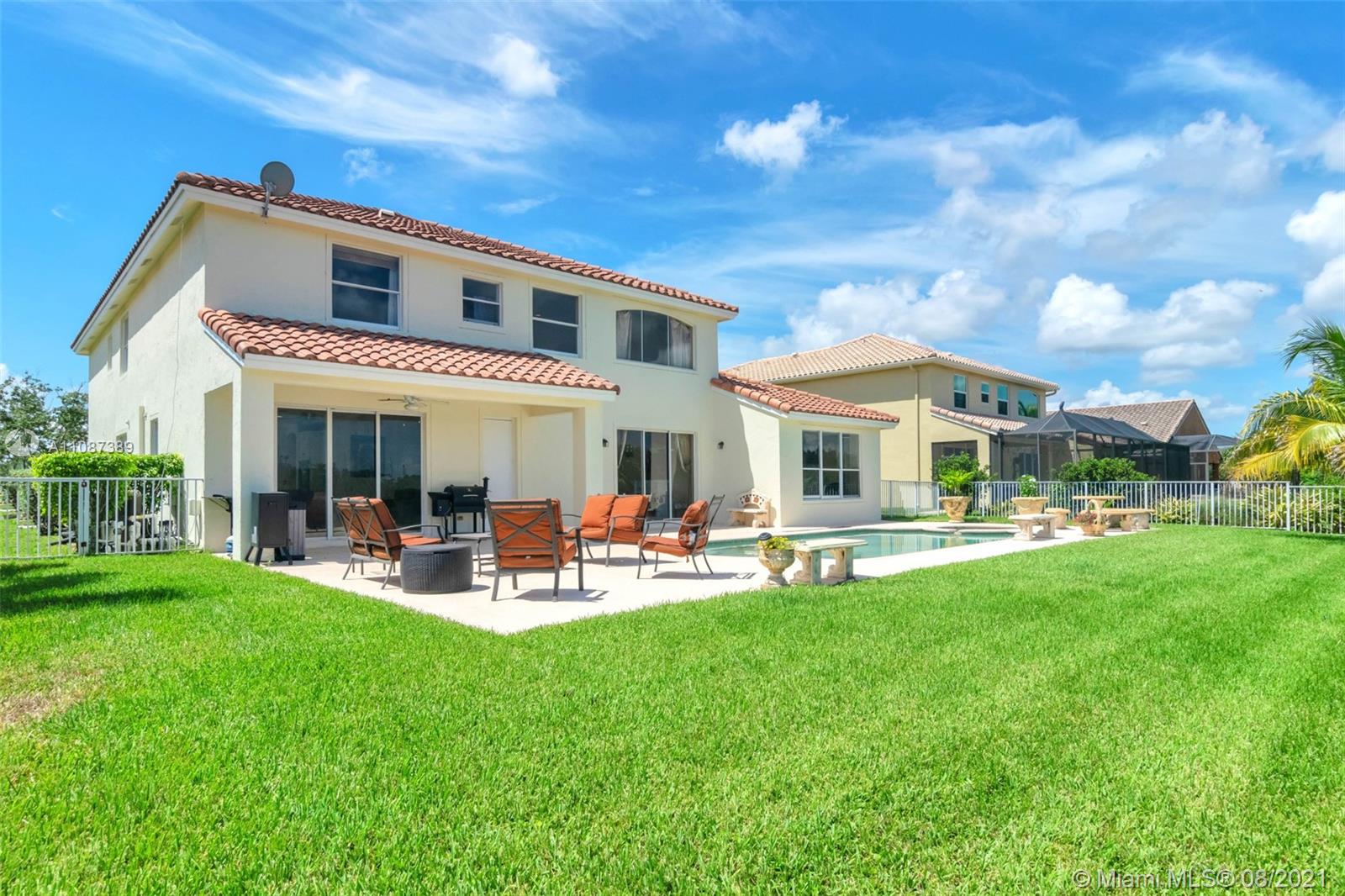Location, location, location. Beautiful waterfront pool home in the sought after gated community of Encantada - perfect with 6 bedrooms, 4.5 baths and a 3-car garage. Walking through the front door, you see a breathtaking view of the water and a natural preserve. The dining room and living room combination makes for a wonderful social area while you enjoy soaring high ceilings open to the second floor. As you walk into the family room and kitchen area, you won’t be able to take your eyes off the beautiful kitchen renovation. This dream kitchen includes solid wood cabinets, granite countertops, newer appliances and an amazing stone feature wall and backsplash. There’s even room for a kitchen dining set.