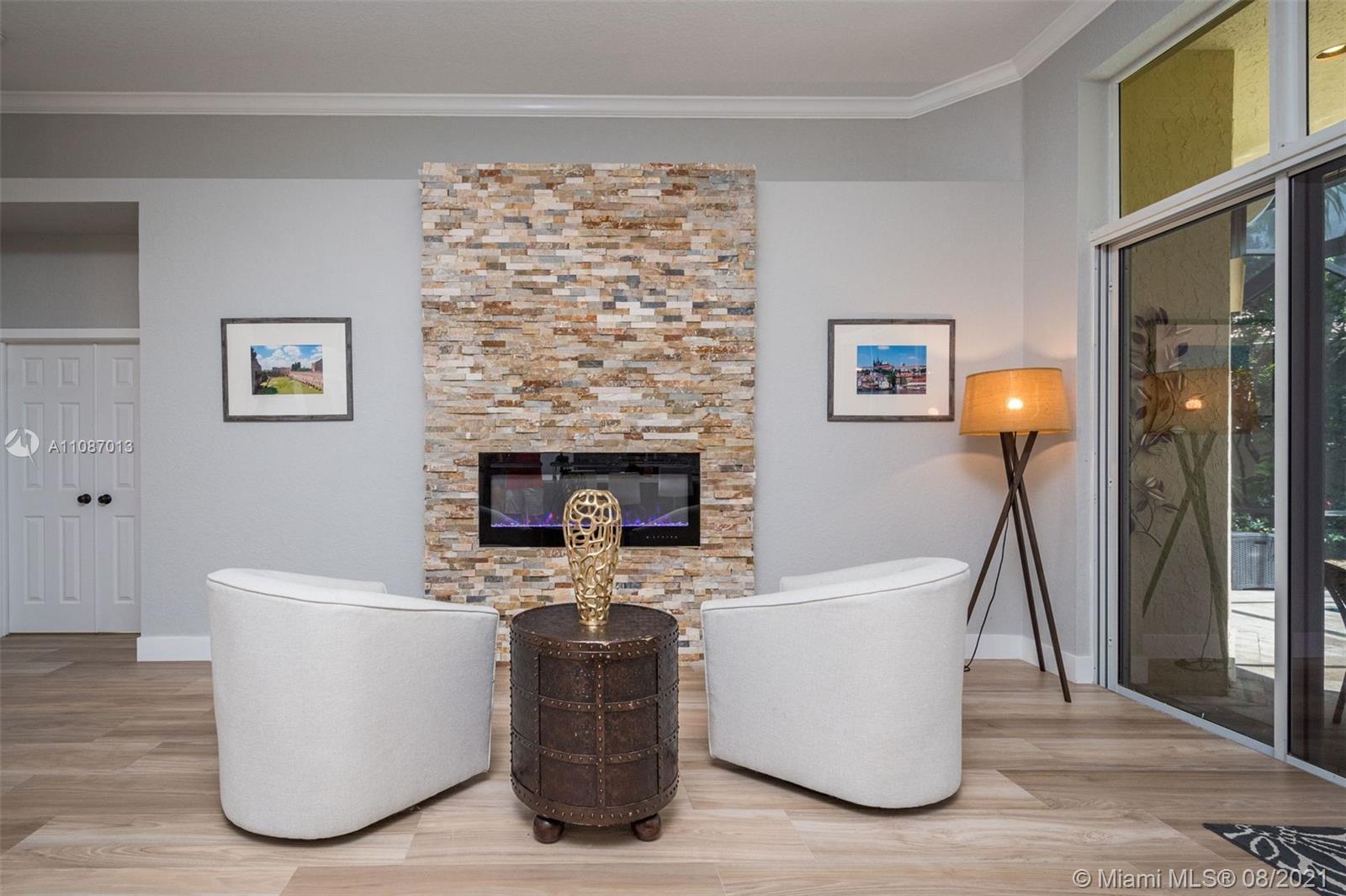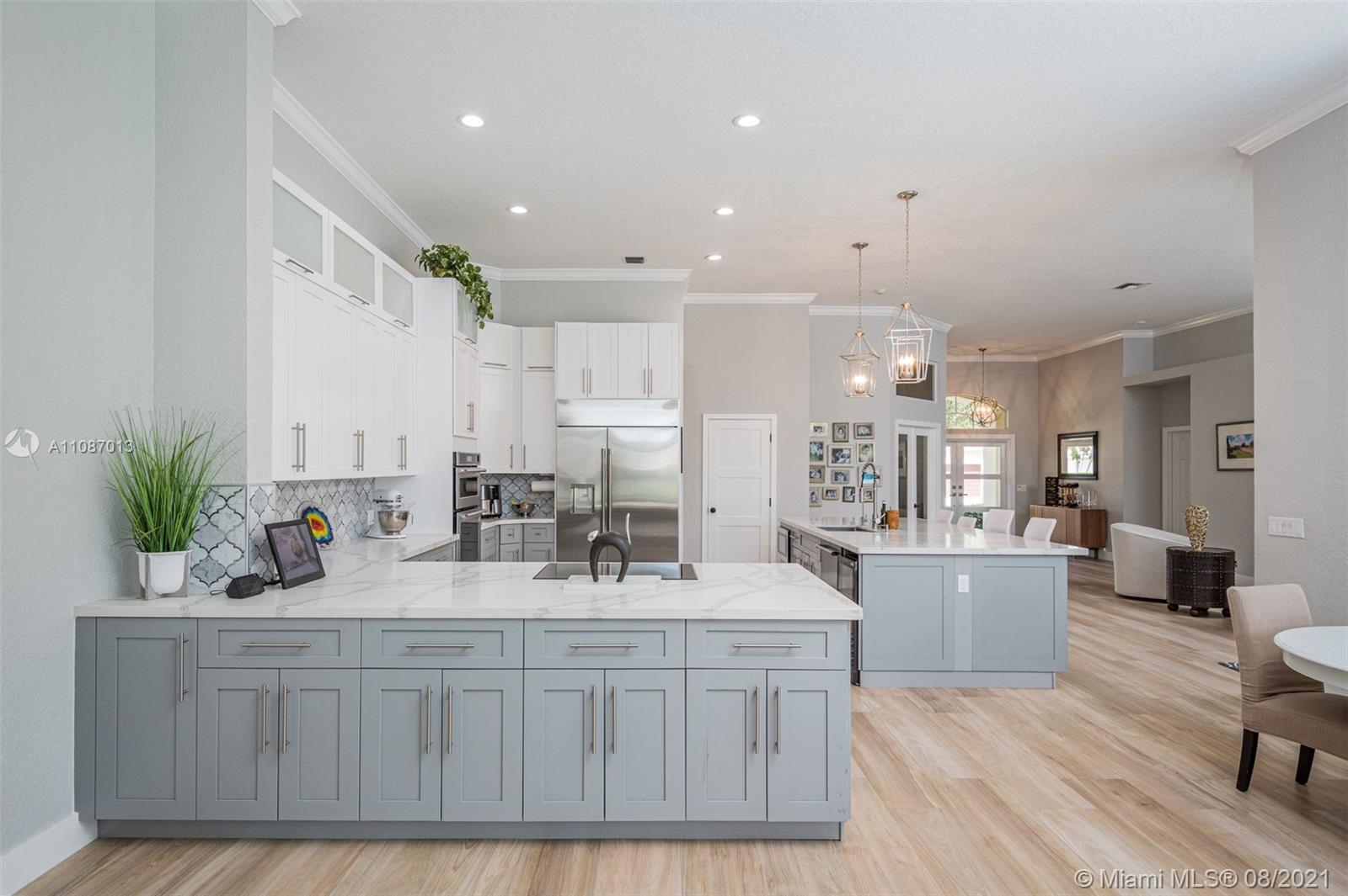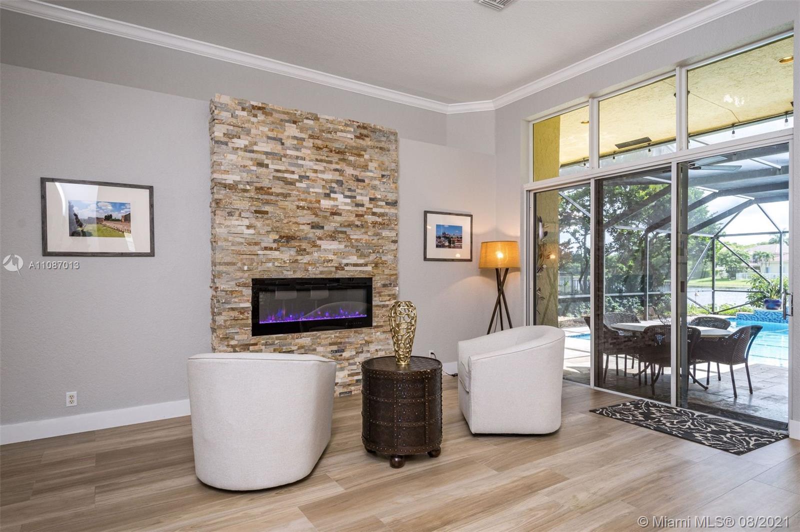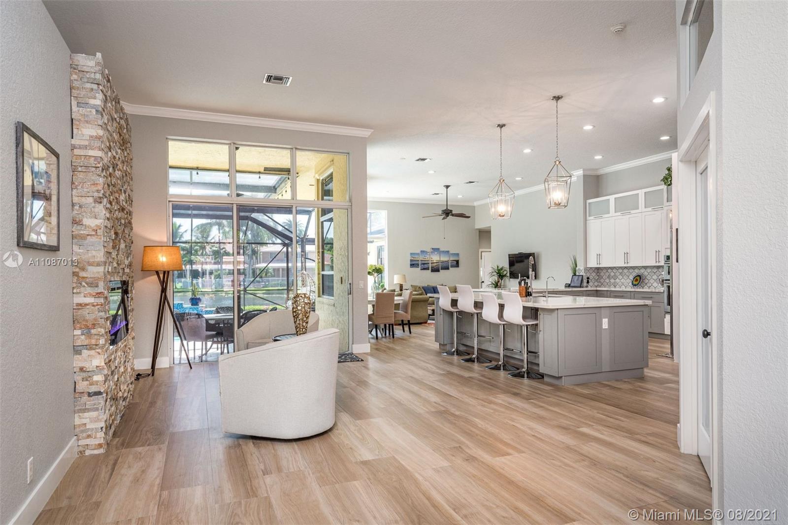 Take in the expansive water views as you enter this completely renovated 5 bed/ 3 bath/ office home in The Ridges. Situated on an 11,640sf private cul de sac lot, this home has it all. Open triple-split floor plan w/ 12' ceilings, providing great entertaining space. Renovated in 2019 with all top finishes, these homeowners spared no expense. Modern kitchen with quartz countertops, stainless steel appliances and large walk-in pantry. Custom light fixtures and LED lighting. New AC. Spacious backyard with renovated screened in heated pool and travertine deck. 3-car garage. A+ schools.