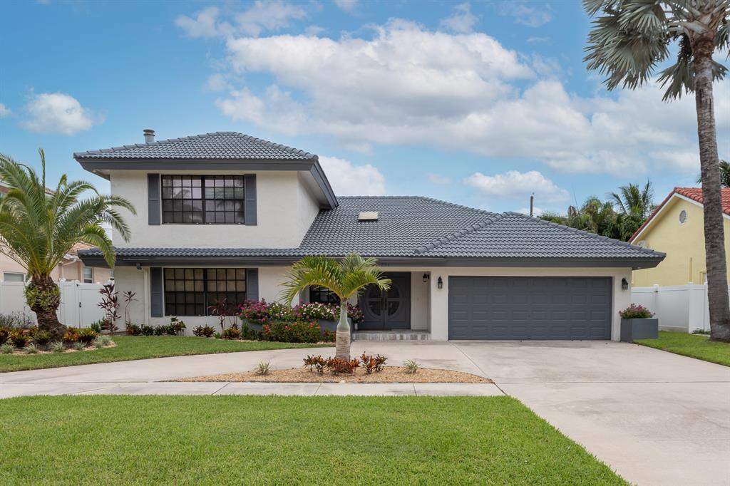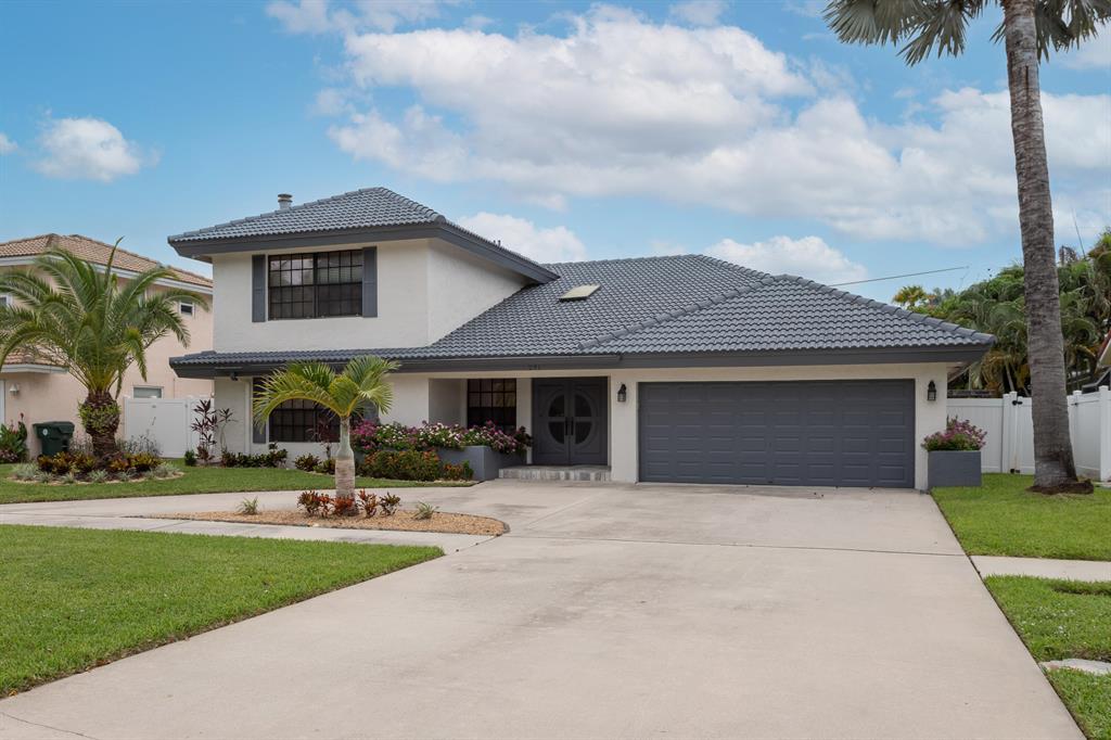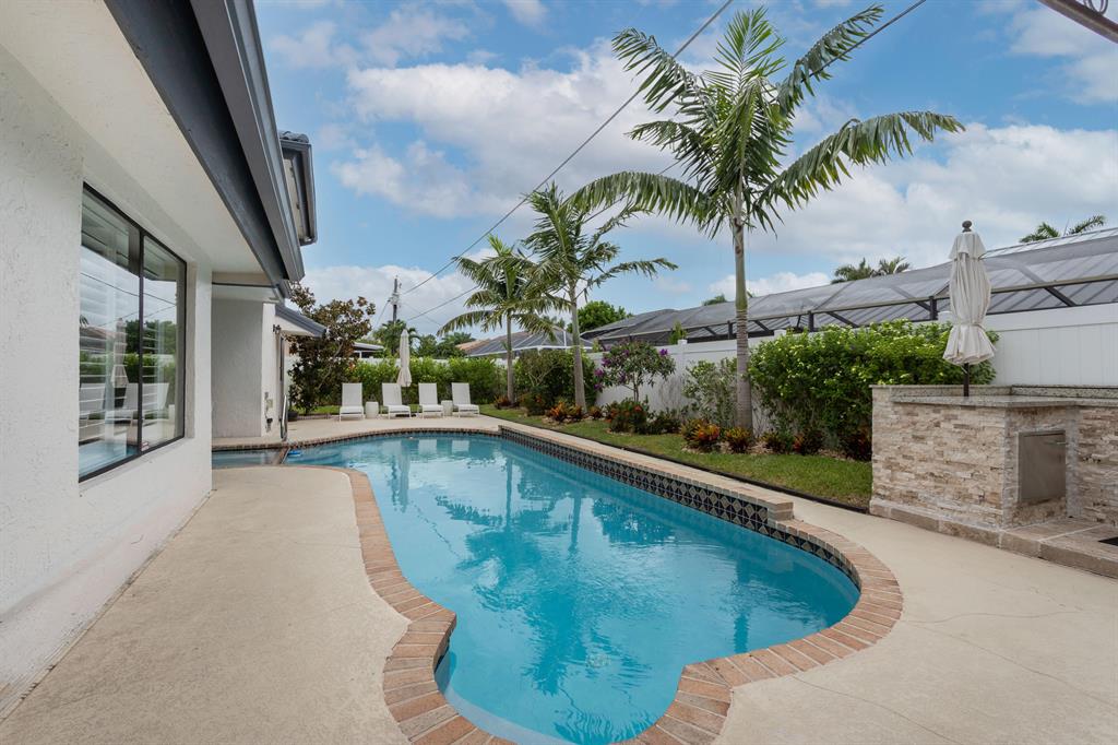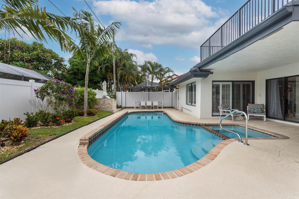 Lovely two-story home recently renovated in East Boca Raton, close to the beach. 4 bedrooms plus a loft, 2.5 baths and over 3000 square feet of ac living space. Very private fenced backyard with inviting open pool and spa. Large patio includes a beautiful built-in BBQ with refrigerator perfect for entertaining. Spacious main bedroom with wood floors is on the first floor. The main suite includes a spacious bathroom with separate shower and bathtub as well as a walk-in closet complete with built-in closet system.The house features an open spacious kitchen with center island and large eat-in area. Volume wood ceilings in living room includes a wet bar which separates it from a wonderful family room on first floor, complete with a stunning cut-coral wall and fireplace. see MORE
