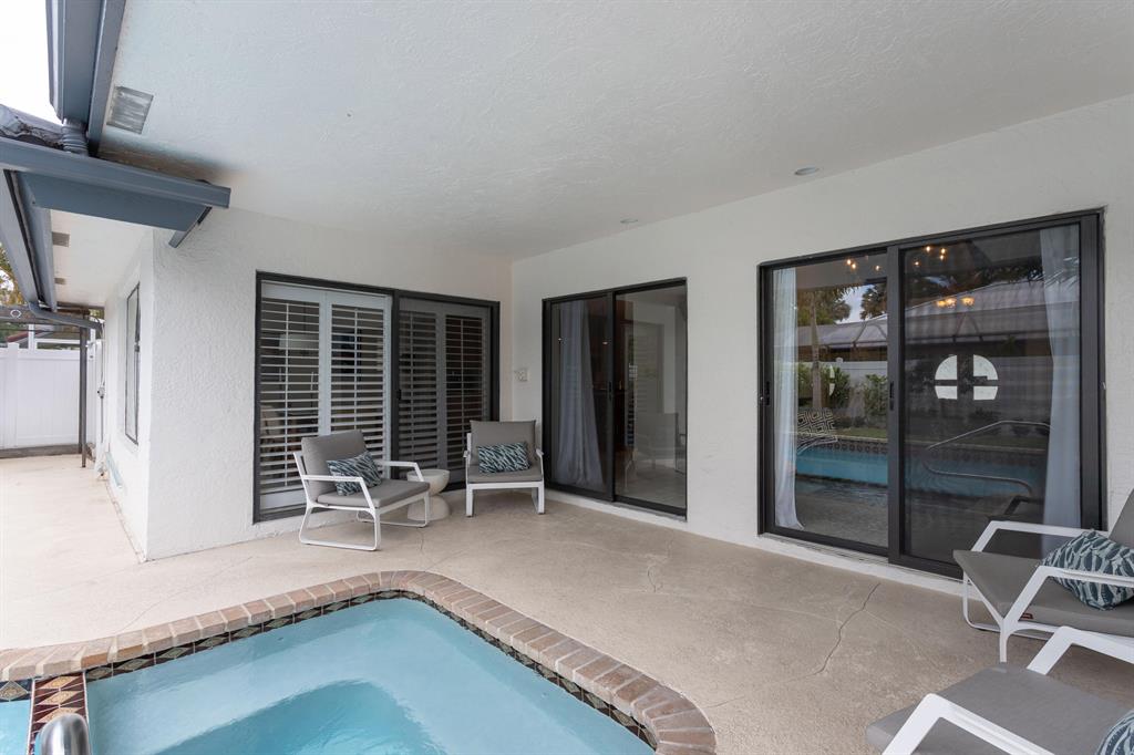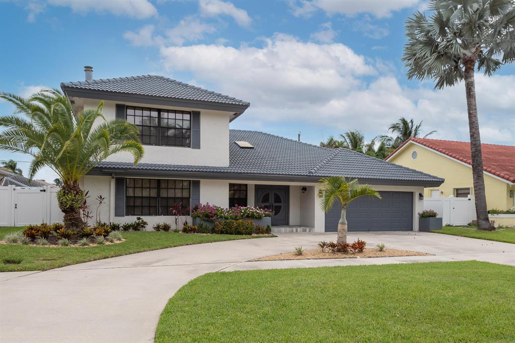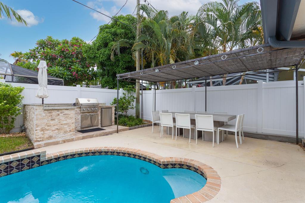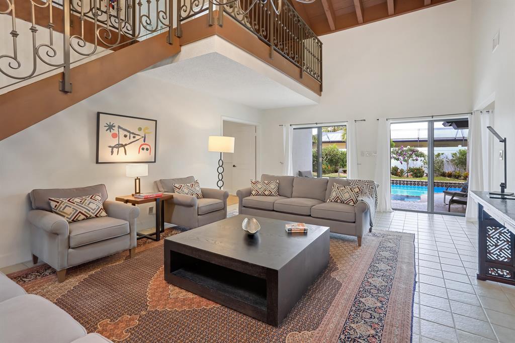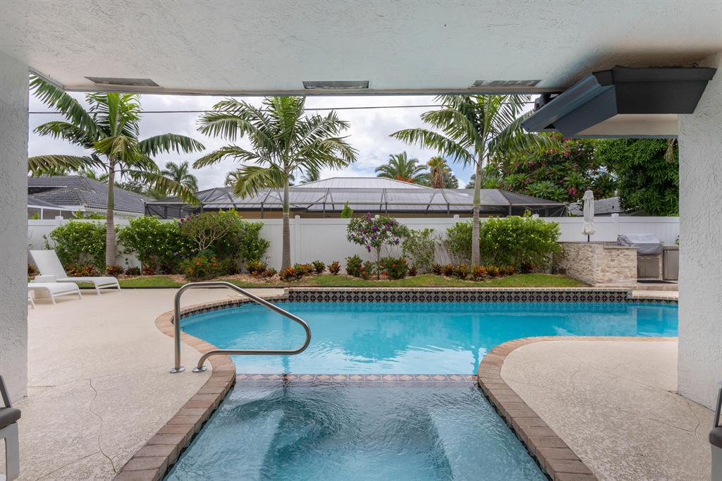 Lovely two-story home recently renovated in East Boca Raton, close to the beach. 4 bedrooms plus a loft, 2.5 baths and over 3000 square feet of ac living space. Very private fenced backyard with inviting open pool and spa. Large patio includes a beautiful built-in BBQ with refrigerator perfect for entertaining. Spacious main bedroom with wood floors is on the first floor. The main suite includes a spacious bathroom with separate shower and bathtub as well as a walk-in closet complete with built-in closet system.The house features an open spacious kitchen with center island and large eat-in area. Volume wood ceilings in living room includes a wet bar which separates it from a wonderful family room on first floor, complete with a stunning cut-coral wall and fireplace. see MORE