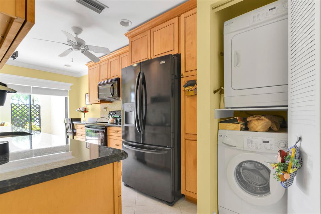 Very light and bright 2 bedroom, 2.5 bath town home located directly on the golf course. Updated kitchen with granite counters and newer cabinets. Bathrooms with beautiful custom cabinets and counters. Diagonal tile floors on first floor and carpet upstairs. Private courtyard and extended florida room Offered unfurnished with furnishings negotiable. Club membership optional.