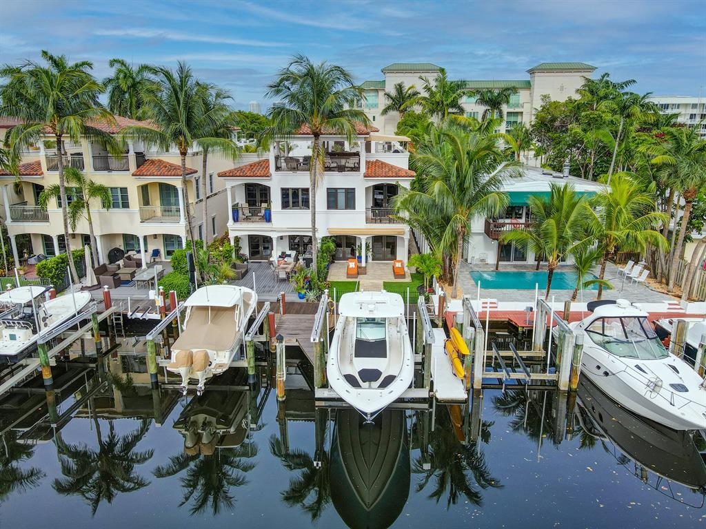 Live the lifestyle of South Florida on Las Olas! Totally upgraded townhome on the water with 3 bedrooms and 3.5 baths and shows like new. No HOA Fees!! A premium location where two waterways meet! Private boat dock with new Neptune 24K lift and also a floating dock for ease of launching your water toys. No fixed bridges to the Atlantic. Take your private elevator to the spacious rooftop Sky Lounge with amazing views of the waterway and downtown Fort Lauderdale. The updated kitchen has been remodeled with new appliances, quartz countertops, and plenty of LED lighting. There is a huge built-in desk - with new quartz countertops on the 2nd level loft! The tropical landscape makes this your private oasis in the city! Walk to Las Olas, beach, shops, restaurants, and nightlife.