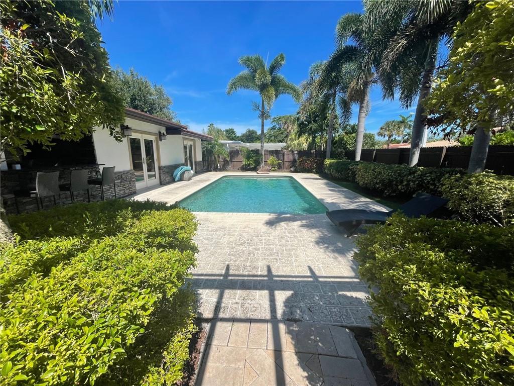 Welcome to Pompano Shores! This amazing 2 bedroom 3 full bathroom home has all the trappings of luxury and comfort. This home originally was a 3/3 but was converted to 2/3 to provide large living and formal dinning space. Extra large guest bedroom and very large master suite. With its open design you get to enjoy all 2164 sqft of living space. The kitchen is a must see, open with bar stools and countertop also with serving windows to outside grill area. Great outdoor living by the pool with lush backyard, fall asleep under the many palm trees by the pool. Tropical oasis to enjoy sunsets in privacy. This is the perfect home for hosting friends and family. Full two car garage with washer/dryer.