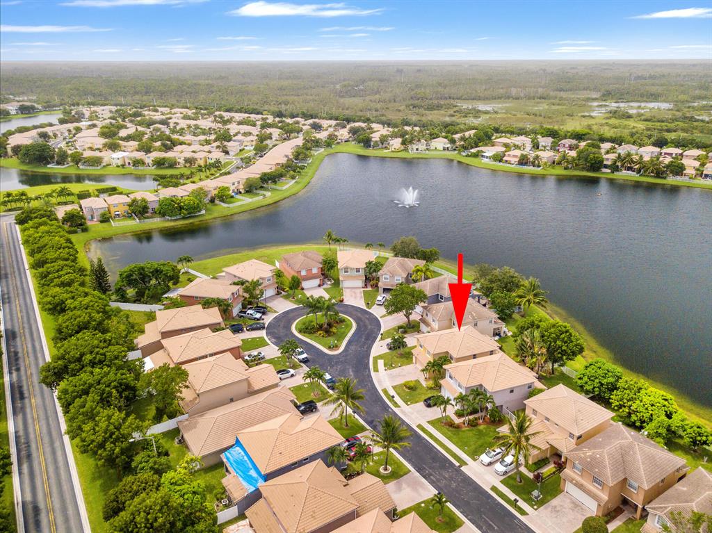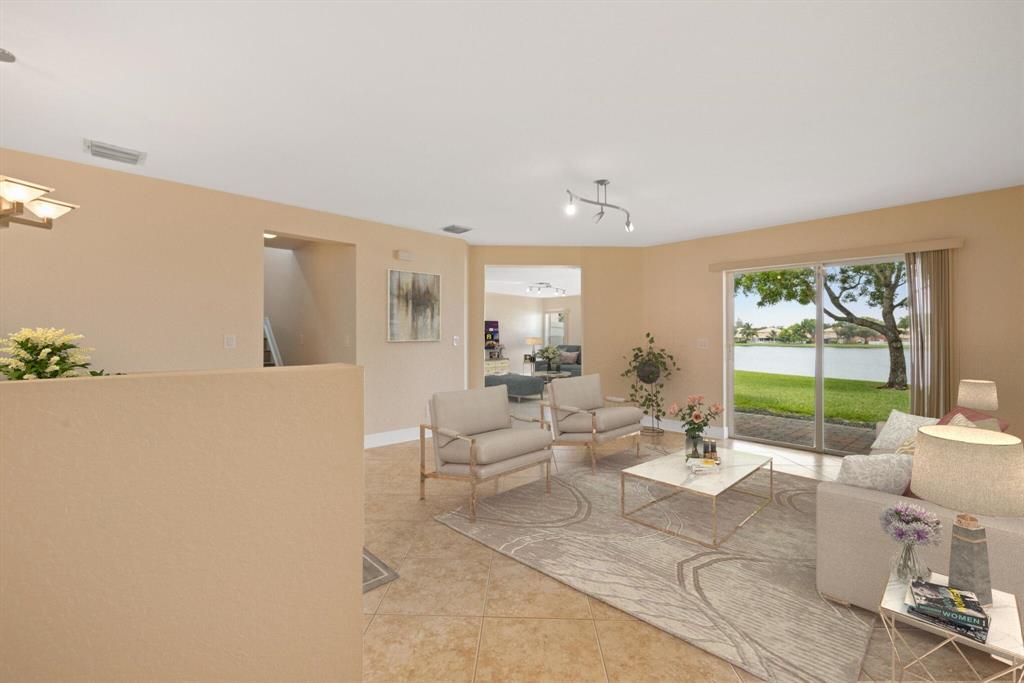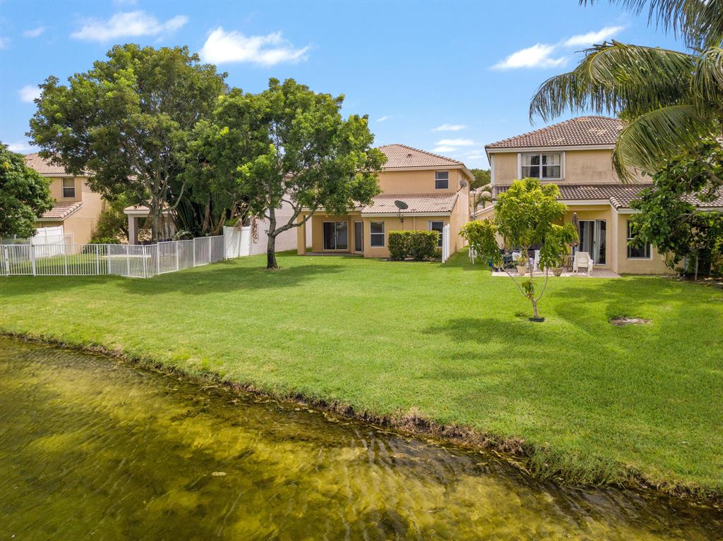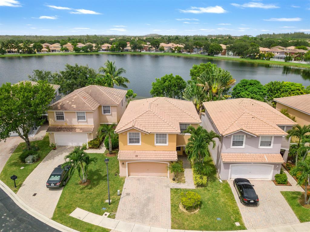 A buyer's dream--3 bedrooms + loft, a wide lakefront lot and a recently updated interior, centrally located in WPB in gated Briar Bay! The modern floor plan flows beautifully from a formal living & dining room to the kitchen w/breakfast bar and cafe area to the family room then out the glass sliders to the covered patio with gorgeous water views. The stairs lead to the spacious loft (br conversion is ez), 2 bedrooms with full bathroom & master br w/2 walk-in closets, lake views & bathroom w/dual vanities, roman tub & walk-in shower. Special features include: brand new laminate wood flooring on stairs & 2nd floor & bedrooms; stone-look tile in main living areas with decorative tile medallion at entrance; kitchen w/real wood cabinets/solid surface counters/stainless appliances; freshly
