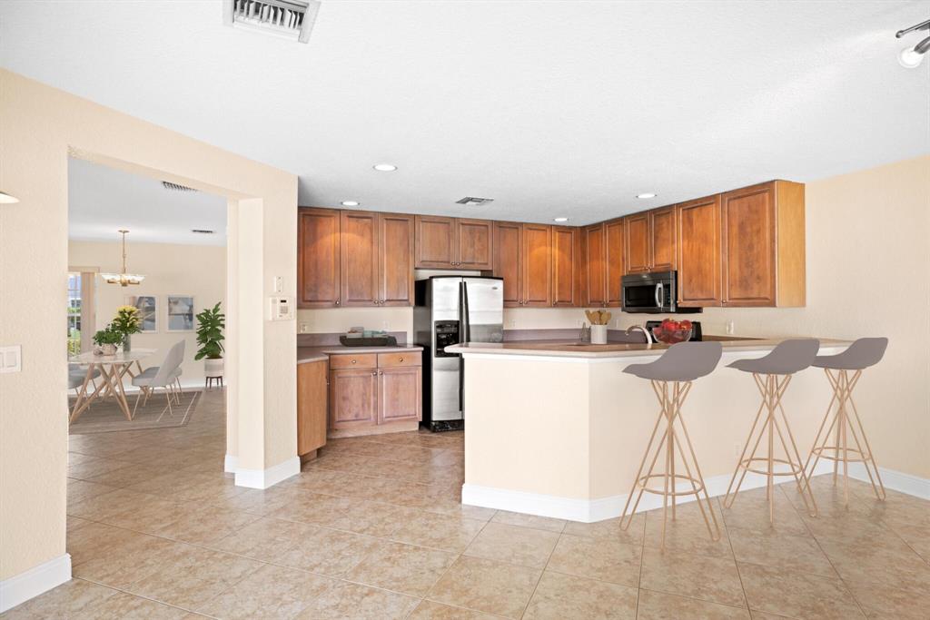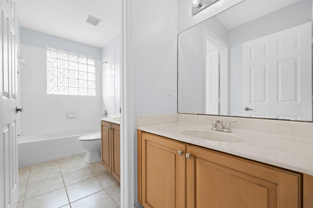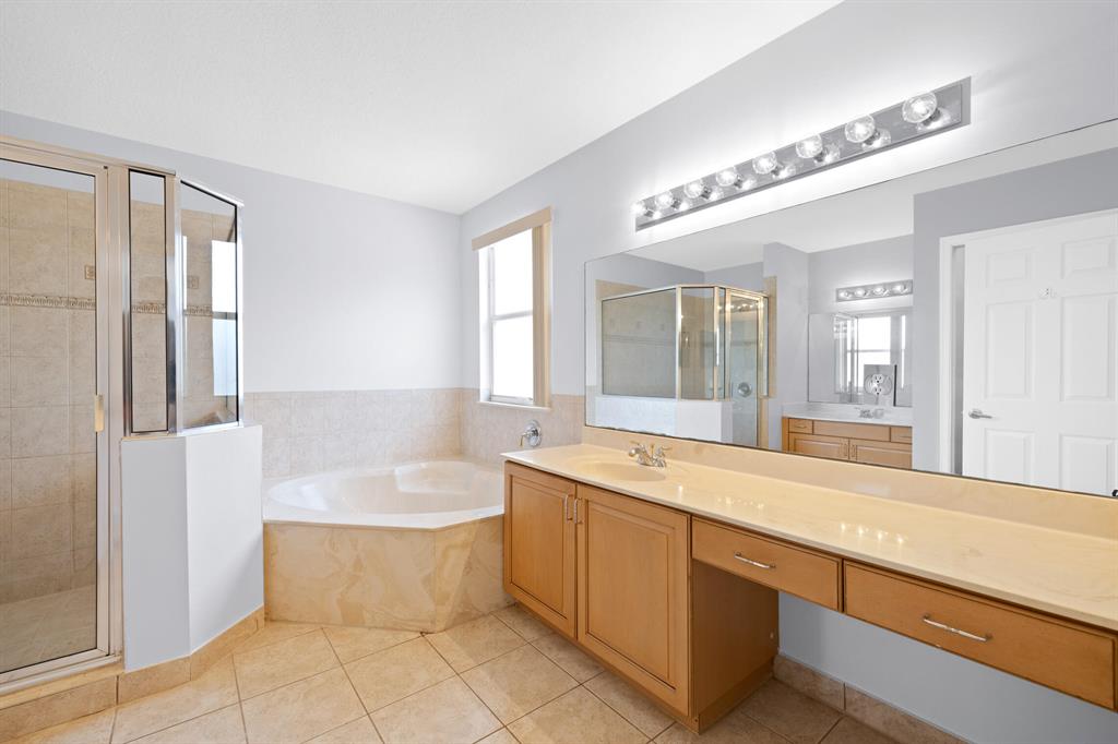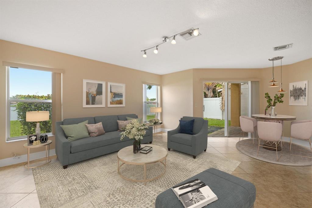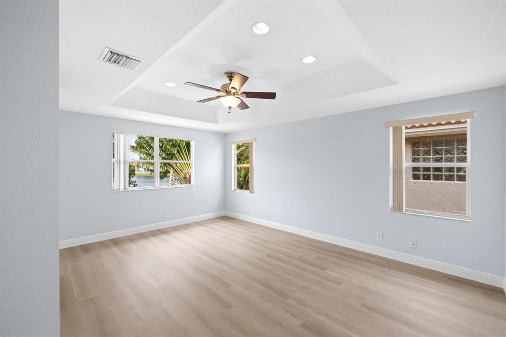 A buyer's dream--3 bedrooms + loft, a wide lakefront lot and a recently updated interior, centrally located in WPB in gated Briar Bay! The modern floor plan flows beautifully from a formal living & dining room to the kitchen w/breakfast bar and cafe area to the family room then out the glass sliders to the covered patio with gorgeous water views. The stairs lead to the spacious loft (br conversion is ez), 2 bedrooms with full bathroom & master br w/2 walk-in closets, lake views & bathroom w/dual vanities, roman tub & walk-in shower. Special features include: brand new laminate wood flooring on stairs & 2nd floor & bedrooms; stone-look tile in main living areas with decorative tile medallion at entrance; kitchen w/real wood cabinets/solid surface counters/stainless appliances; freshly