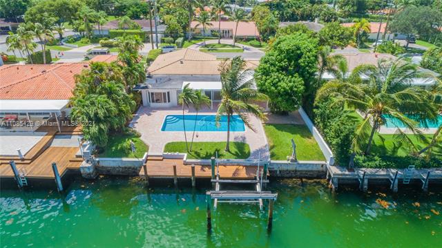 Beautiful updated modern waterfront pool home in a terrific location. This Property is located only 9 houses away from the bay. 75ft on the water with boat dock, boat elevator lift with 4 pilings, travertine marble floors thru-out. Lovely kitchen with granite counter tops- counter island, custom wood cabinets, gas range. Impact windows and doors thru-out and 3 beautiful bathrooms. Enjoy Life in your spacious backyard and pool while watching the parade of boats, jet ski’s, paddle boarders, kayaks, manatees, fish, dolphins and more going up and down the waterway. Only 30 seconds to the Intracoastal and 8 minutes to Haulover inlet. (Garage or storage room for your toys). So much more to see in this lovely one story home.