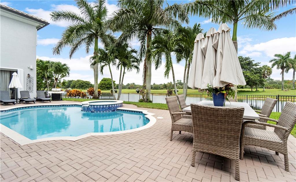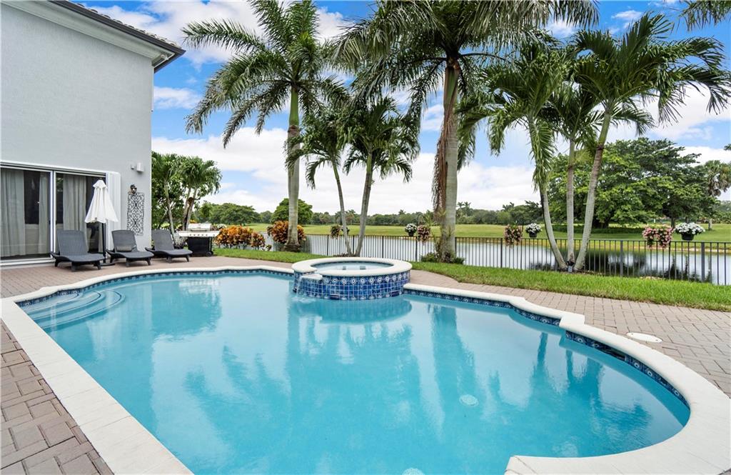 Stunning estate home w/ 6 beds, 5 baths +office +huge bonus room & 3 car garage. Grand foyer entrance w/ 21’ soaring ceilings & marble flooring throughout main living areas. Heated pool & spa overlooks large fenced yard w/ lake views. Gorgeous landscaping both front & back. Upgraded electric roll down screens on private back patio. Situated on quiet cul-de-sac w/ oversized driveway to fit many cars. Brand new roof in 2018. Custom Kitchen Art kitchen w/stainless appliances, double oven & wine fridge. Upgraded, fans, fixtures & beautiful window treatments throughout. Master bedroom w/ built-in closets & nice sitting area. Freshly painted. Accordion shutters. Located in Olde Brooke of Heron Bay. Enjoy all amenities including 2 clubhouses, gyms, pools, tennis, community events & more!