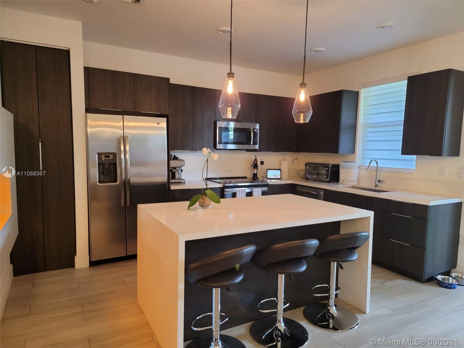 Contemporary style, 4 bedrooms, 3 bathrooms, 1 half bathroom. Upgraded interiors with modern design kitchen cabinets, quartz counter top, stainless steel appliances, washer and dryer. Great secure gated community. Resort style clubhouse for residents and family, tennis court, basketball court, children's aquatic park and playground, fitness center, sauna & steam room.