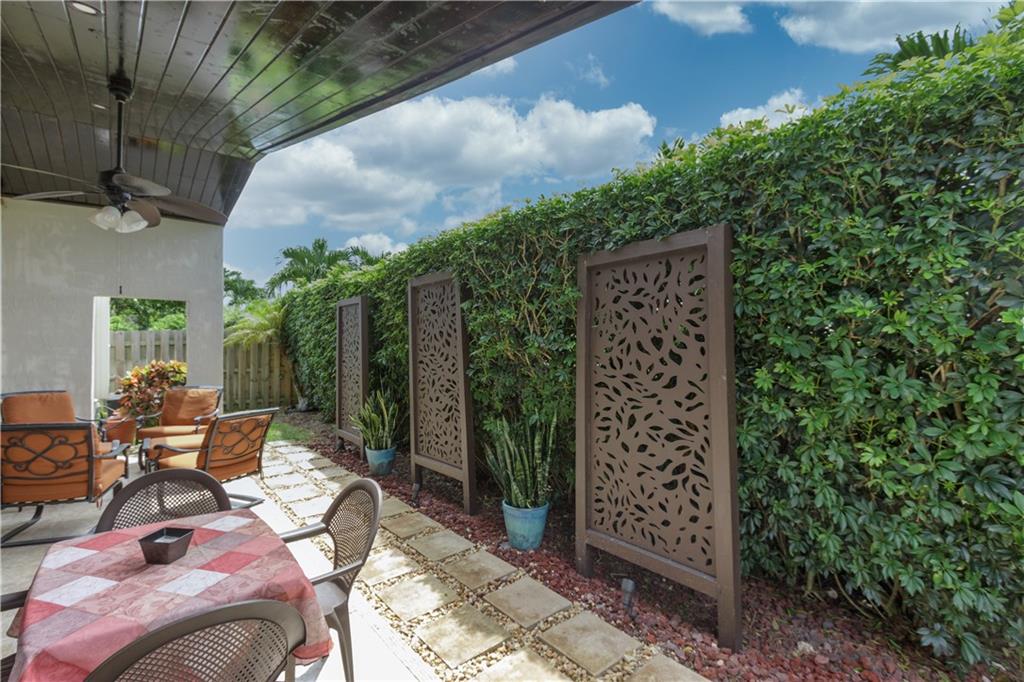 PRICE REDUCTION!!! This 3/2 home with a 2 car garage will stun you. It is upgraded from top to bottom with a large gourmet kitchen with wood cabinets, stainless steel appliances and granite counters. The 3 bedrooms have wood floors with large, wood like porcelain tiles in the living areas. indoor laundry. The large owners suite has 2 walk in closets, a huge, fully renovates bathroom, This house has the largest paved driveway in the community that can fit 4-6 cars. Relax in the zen like fenced in backyard with 8 foot hedges for privacy and a custom wood paneled ceiling with built in lighting. The communities low hoa covers the lawn care, sprinklers, cable tv, alarm system, pool, tennis, billiards, card rooms & spa. more pics t/c Best schools in PBC