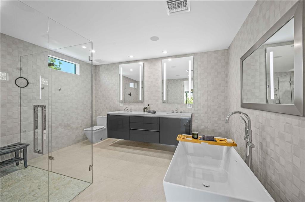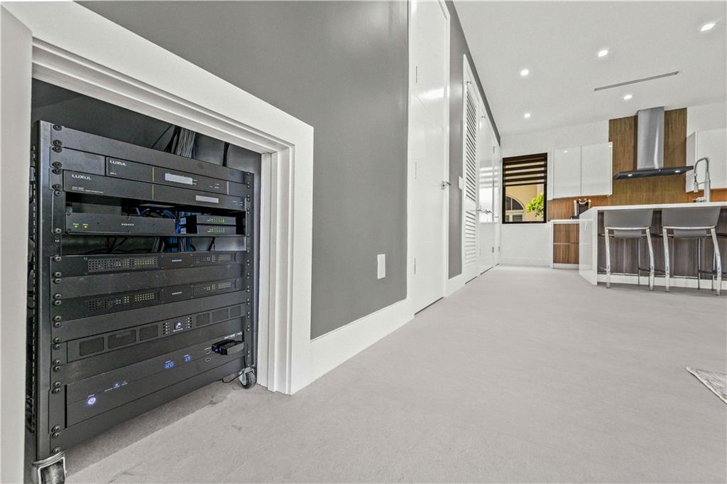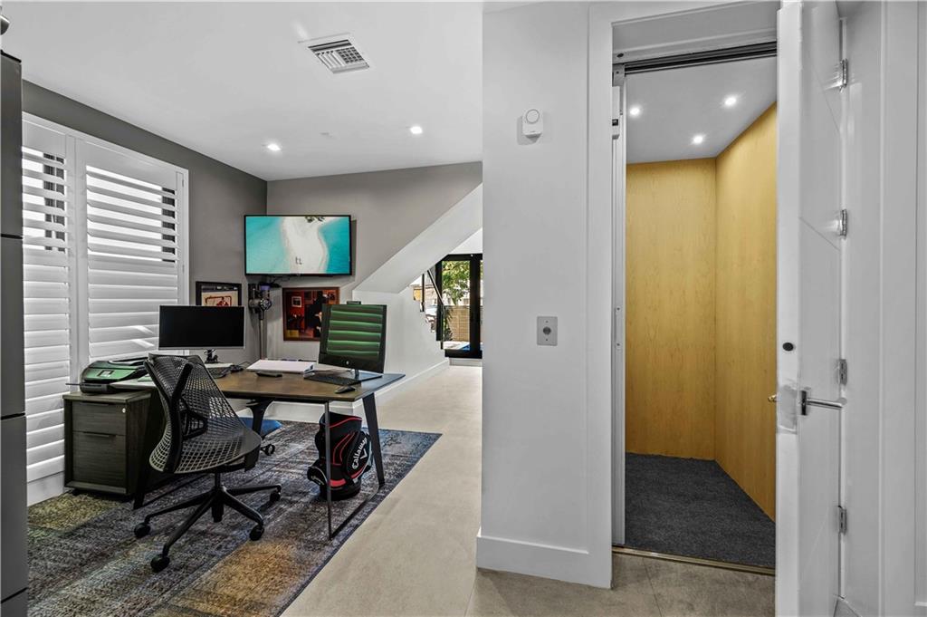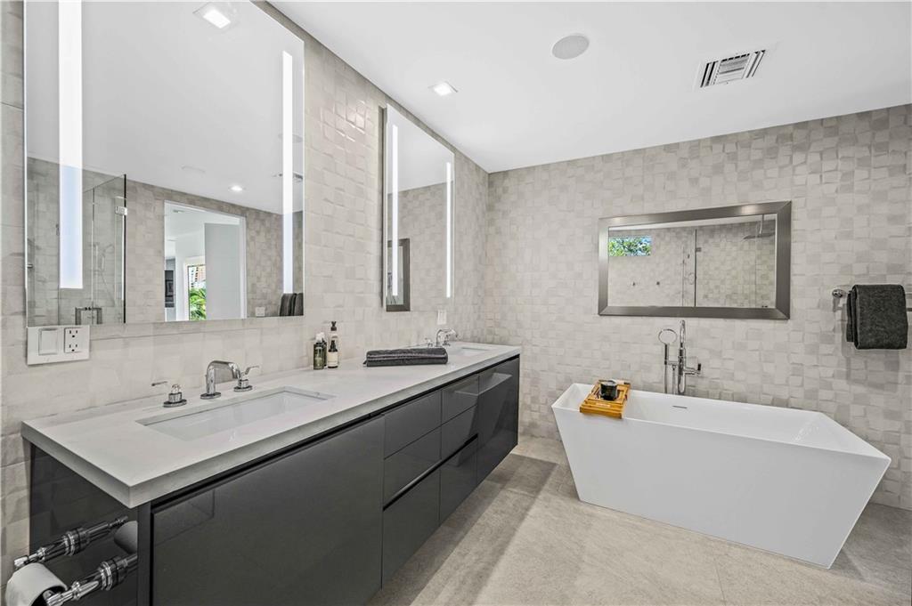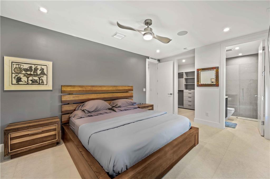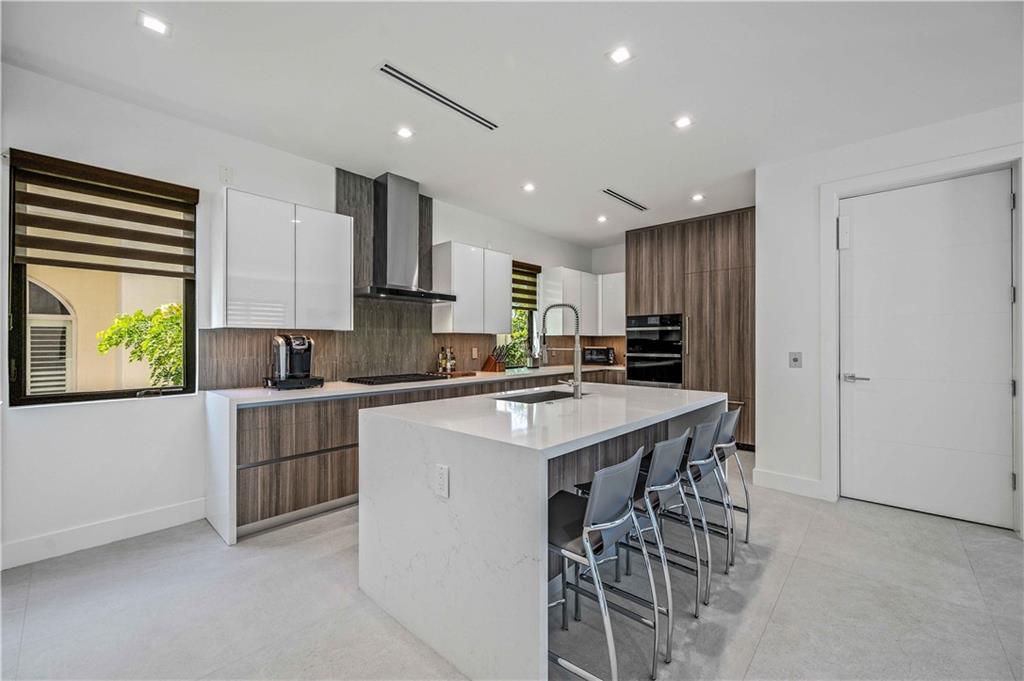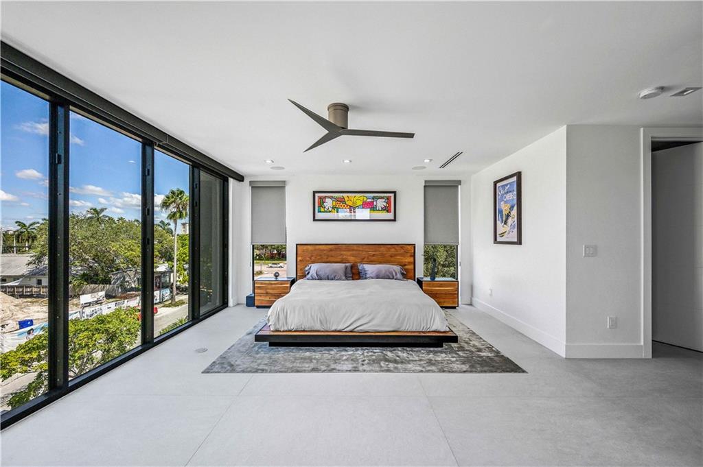 Instant Gratification! A ready to move into new 2021 Las Olas neighborhood pool home. This house is cool, modern and light filled with many technology and design upgrades. Two story foyer, main floor living, dining kitchen with breakfast island, powder room and laundry. Walls of glass provide dramatic city skyline views. The living room opens to an open balcony. The top floor is dedicated to the primary suite, and accesses a roof level terrace with gas grill and more fabulous views. All three levels are served by elevator. Gated drive, a splash pool and two car garage (over 10 ft height) has epoxy pebble flooring and slat wall storage system. An electric outlet is in place for EV charging. [Information is from 3rd party sources including BCPA and is believed accurate but not warranted].