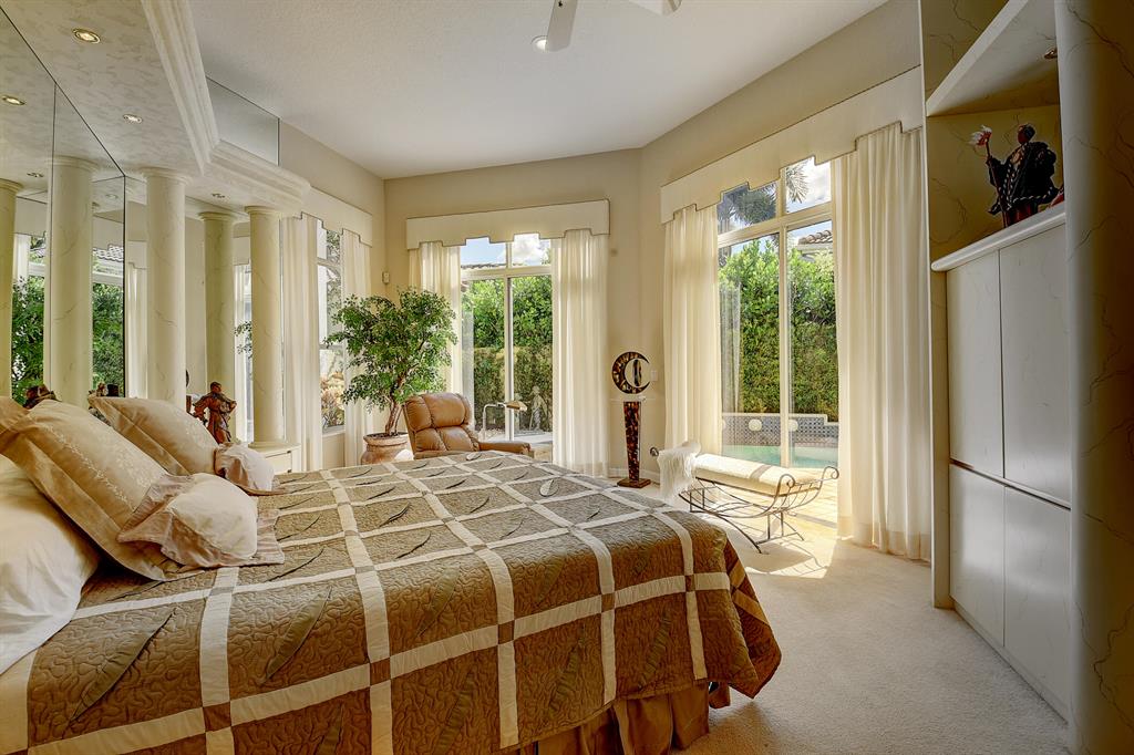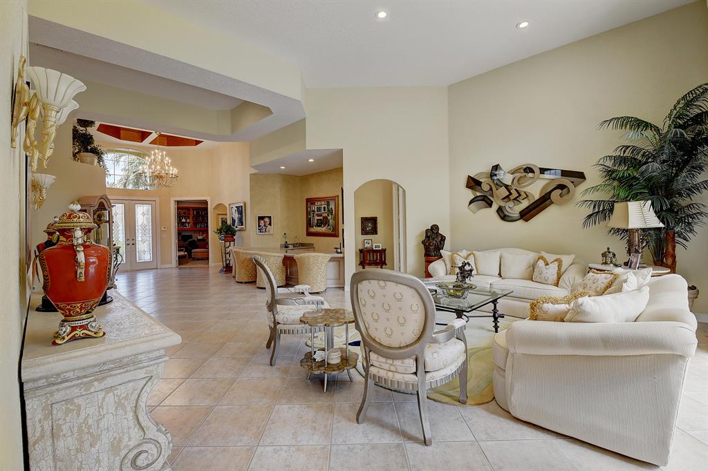 Enjoy privacy and quiet in this 3 bedroom, 2.1 bath plus den single story home. Soaring ceilings and an open design make this one of the most desireable floor plans under $1.0 million in Woodfield. Neutral tile throughout. 42'' cabinetry in the kitchen with natural gas cooking. Upgraded window treatments. The primary bedroom overlooks the pool and features spacious outfitted closets and a very large master bath. The pool area is perfect for entertaining. 2 zone air conditioners--1 is 5 years old and the other is practically brand new.
