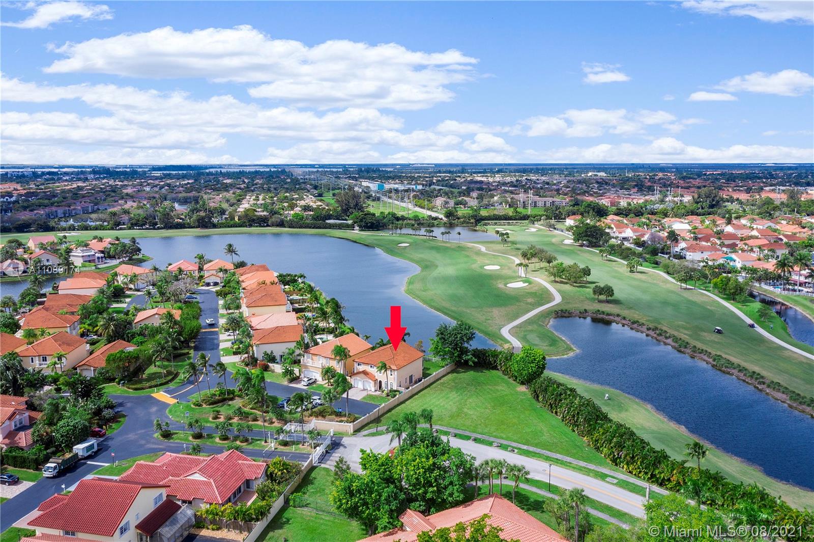 Great Corner Lake & Golf View 4 Beds & 2 1/2 Baths Single Family House located in the well known & desired community of Doral Dunes. It features 180 degrees Private location for those who wants to have easy accessibility and privacy coming home. This house has Wood Cabinet kitchen & Granite Counter tops. Tiles on First & Second Floors and Wood Brazilian Red Wood on the stairs. This property has 2 AC Units, Laundry Room, Aluminum Shutters and all doors are solid & Firm Wood. It has almost 3000 SQFT under AC and a lot size of 5610 SQFT with plenty of room to build a pool. The Doral Park Country Club is just a few steps away and shares a great lap and recreation Pool, Gym, Sauna, Jacuzzi, Tennis, Volleyball, Basketball, Kids playground, Bar, Restaurants and party Area. Please call LA.