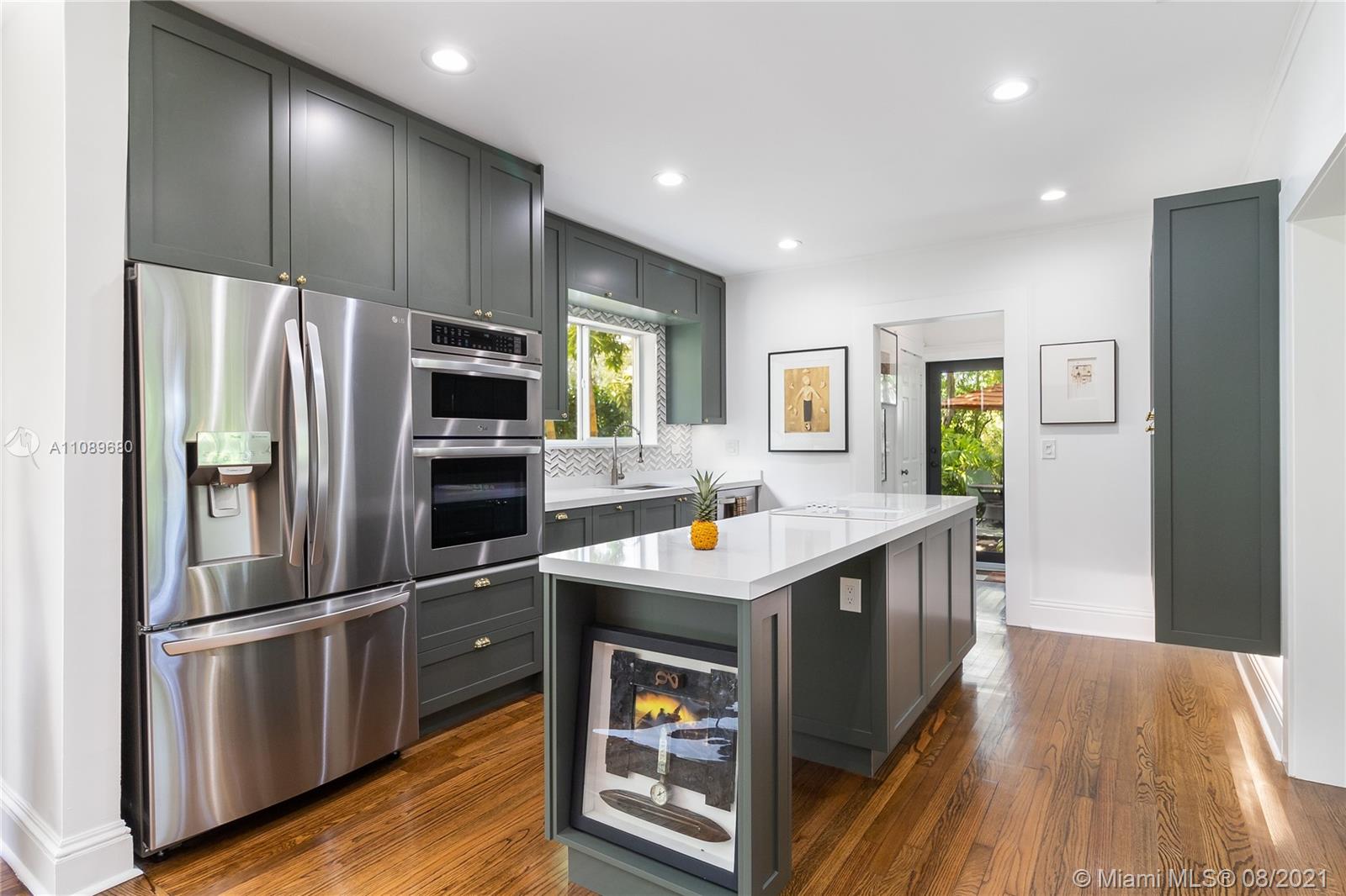 Spectacular botanical paradise in the heart of Miami Shores. This majestic property just received an extensive renovation that preserved the magic and history of the home. The ONLY double lot for sale in the area means you have a blank canvas next to the home to build your most creative space. Empty lot can accommodate a complete second home, a pool along with an accessory dwelling unit, or a full extension of the living quarters. Includes approved plans and materials to convert the garage into a 3rd bedroom, perfect for a studio or home office. Custom European kitchen with direct garden views from every angle. Original oak floors and custom pine accents, combined with a working fireplace, make this the perfect home to enjoy a relaxing disconnect from the busy Miami lifestyle.