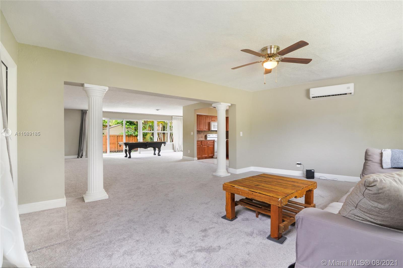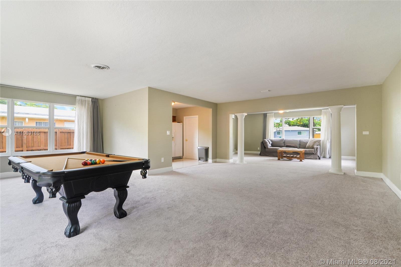 Light and breezy home on beautiful tree-lined street in Breeze swept Estates of North Miami. Open concept with 3 living spaces. Many options for at home office, playroom or multiple living areas. Home features 3 bedrooms, with 2 updated bathrooms, Master has ensuite bathroom. Brand new carpet throughout. Terrazzo underneath. Tile floors in kitchen and baths. Beautiful natural light. Impact windows and doors throughout. Large 2 car garage and separate laundry room. Roof and fence were redone in 2014. A/C motor was replaced and new dryer in 2021. New plumbing in 2021. Minutes from Barry University. Easy access to 95, airports and beaches.