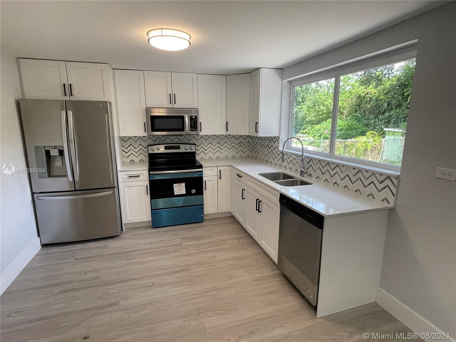 This beautiful three-bedroom two-bath home has been fully updated with amazing features. The roof was done in July of 2021. A new kitchen with a modern backsplash and stainless steel appliances with a large window overlooking a large yard that has room for a beautiful pool and pergola. The property has beautiful waterproof vinyl floors, PVC plumbing, new electrical, new vanities, modern shower tiles, black shower finishes, and has been painted with modern colors. Located in a great area near Oleta State river park, minutes from the beach, and close to highways and shopping. This is a fantastic home for a new family make an appointment ASAP...