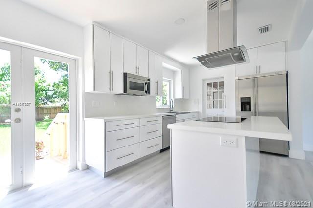 Create your very own private oasis in charming, historic Griffing Biscayne Estates. This home is beautifully renovated with excellent craftmanship. All new and ultra modern open living. New porcelain tile bathroom. Spacious kitchen features a glass cooktop island & custom made cabinets. Calacatta quartz countertops & backsplash. SPC flooring & hardwood baseboards. Smooth ceilings & walls. New ceiling fans. LED recessed lighting with dimmers, Impact windows & doors. Fully equipped laundry. Epoxy garage floor. Gutters with rain chains & outdoor lighting. Two comfortable driveways. Privately fenced, aluminum gates. Tankless water heater, beautiful landscaping with sea grape, mango & large avocado tree. New sprinkler system. Argentine Bar B Que. All done with permits. SHOW BY APPT ONLY!