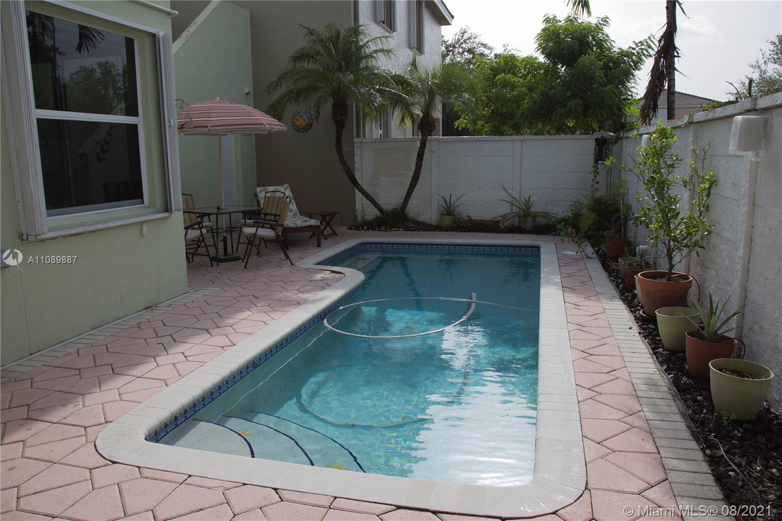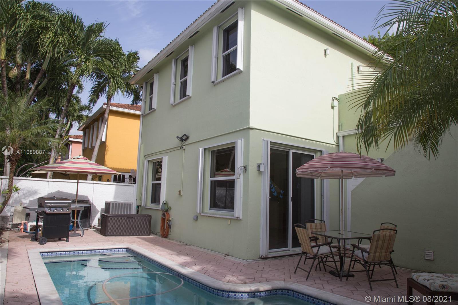 This beautiful Mediterranean style two story pool home in the safe and family friendly gated community of Piazza Vecchia. This pool home features 3 bedrooms, 2.5 bath, and an additional half bathroom located in the pool area. Spacious/Open floor plan offers many updates throughout including kitchen with quartz counter top and new SS appliances, relaxing pool and backyard patio, additional entertainment/terrace area above garage with access to back patio and second floor. Huge master room, master bathroom with double sink, separate Roman bathtub and shower, plenty of closets and storage. Great location near A rated schools, major malls, parks and highways. HOA includes cable, internet, ADT security system and common areas. Home is priced to SELL & Easy to show!
