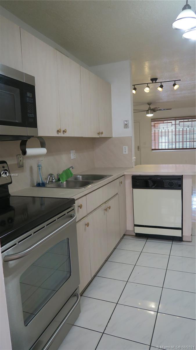Excellent opportunity to own first floor townhouse with covered lighted back patio in West Poinciana Villas. Property features 2 brms 2 baths, new AC inside and outside units,newer water heater, storage space under stairs,master bedrm walk in closet, laundry room, washer and dryer, hurricane shutters and iron bars on windows and sliding door, stainless steel appliances, two assigned parking spaces, plenty of guess parking, low HOA fee. No leasing allowed. Dont miss this opportunity. Make your best and highest offer today. ALL CONTRACTS ARE SUBJECT TO COURT APPROVAL language must be included in contract with your offer. Thank you for showing.