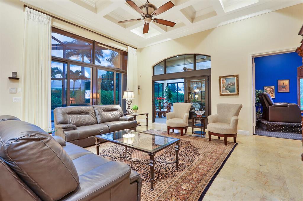 Elegantly appointed and beautifully customized 4600 SF Dreamstar estate built on a rare.75-ACRE LOT with magnificent curb appeal. The elongated circular driveway and exceptionally large front yard provides incredible drama when approaching the property. Situated on one of the largest lots in Ibis, this home has been upgraded, expanded and meticulously cared for. IMPACT GLASS throughout and a WHOLE-HOUSE GENERATOR, and all HVAC units have been replaced within the past three years. In addition to the 4 BR's and 5 BA's, enjoy a large office with handsome wood flooring, a customized HOME THEATER off the family room as well as a newly added 300 SF AIR CONDITIONED SUN ROOM overlooking the magnificent property.