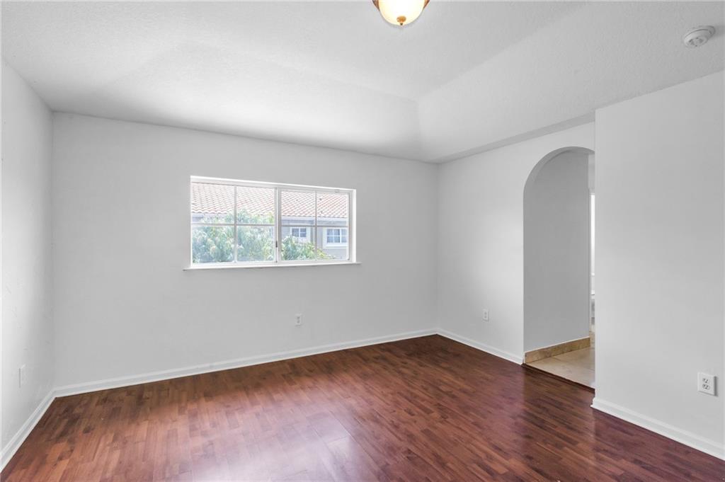 You'll love making this gorgeous home your new home! Featuring a bedroom & full bath on the first floor, a double wide drive & garage allow for three vehicles, a covered entrance, backyard complete with a charming patio area & a privacy fence, a perfect place for your morning coffee. The interior boasts a stylish tile flooring throughout the first floor and wood laminate floors in upper bedrooms & there is a kitchen equipped with Corian countertops & wood cabinets. 24-hour guard gated community with a very nice clubhouse with a beautiful pool, gym, and jacuzzi for it's residents. Make this your home today!