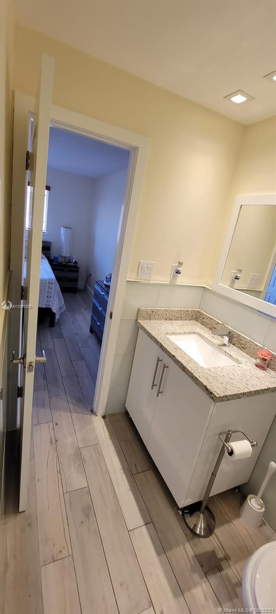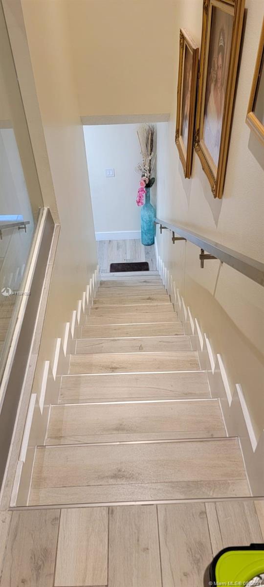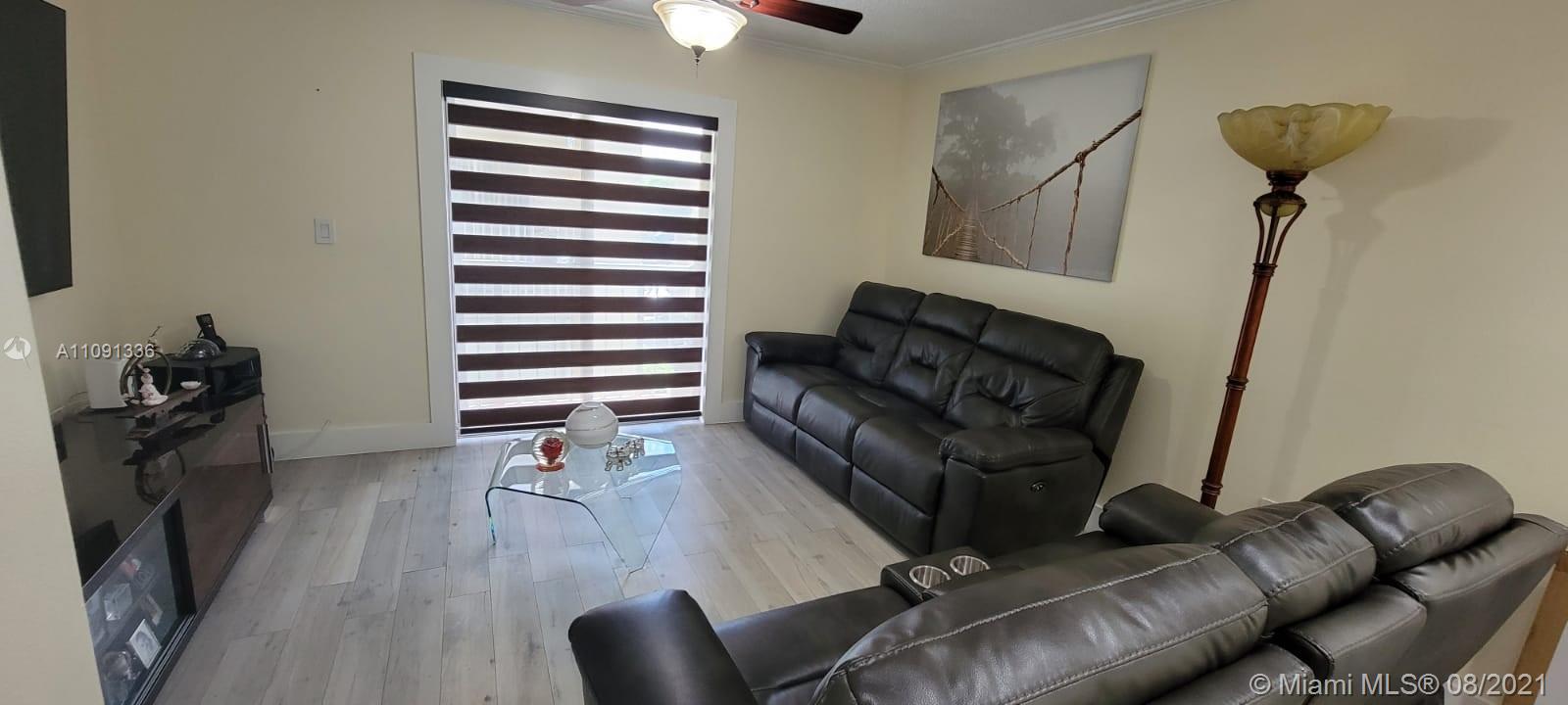 Spectacular and tastefully upgraded property in the heart of Hileah! Property features 2 bedrooms and 1.5 baths. Totally updated kitchen with granite countertops, top of line stainless steel appliances, beautiful cabinetry and touch water faucet. Tile floors with laminate wood look and white baseboard, which is a plus! Crown molding throughout. Tile stairs with stainless steel handrail and glass finish, it looks amazing! Upgraded bathrooms with granite vanities. Shower only bathroom with glass shower tiles! Both bedrooms have built in closets. Additional storage space under stairs. Impact windows and doors. Tankless water heater. Combination door lock stays as well as security cameras. Close to major highways, airport, shopping and the beaches! This is a MUST SEE! It will not last!
