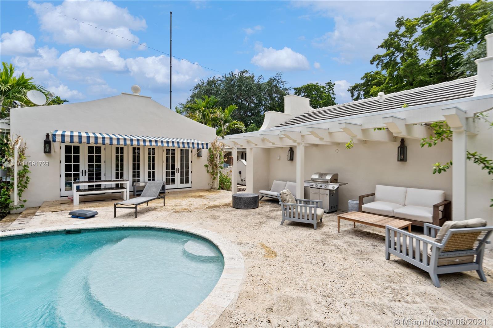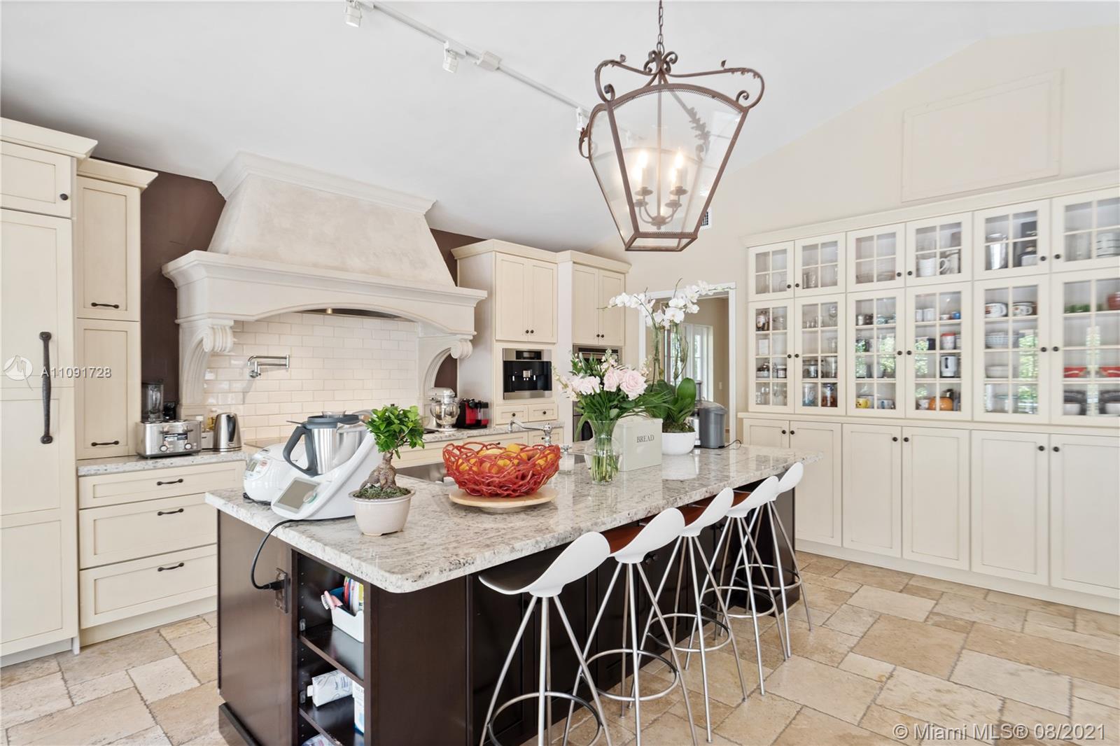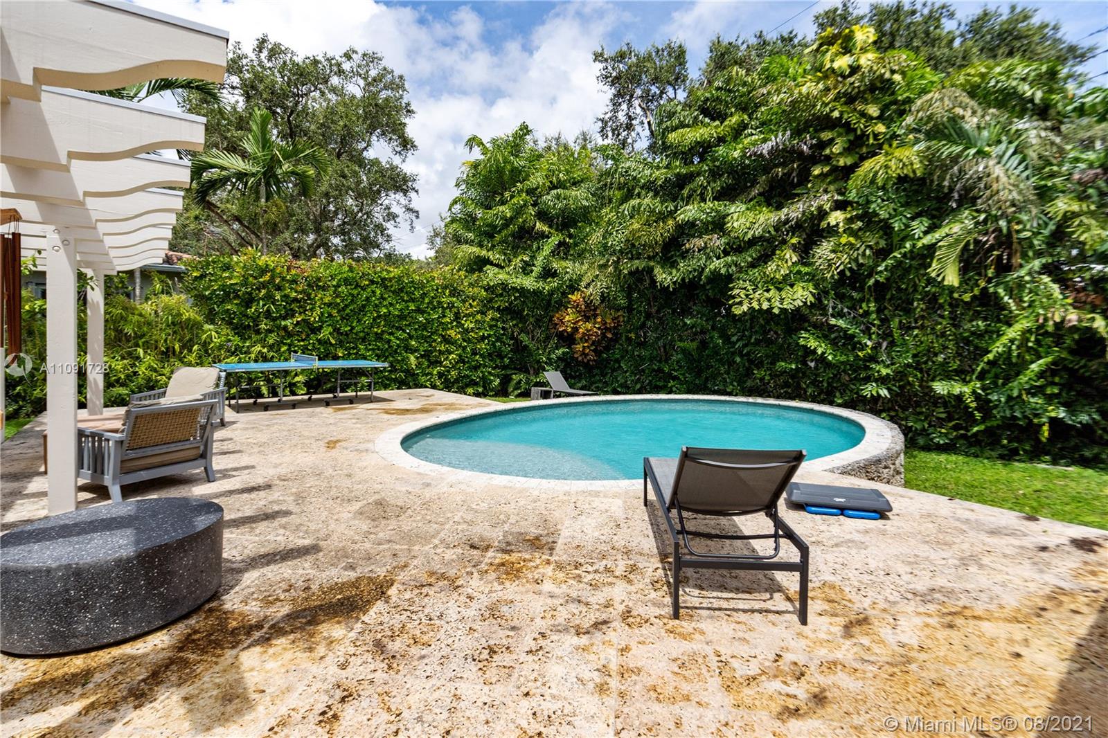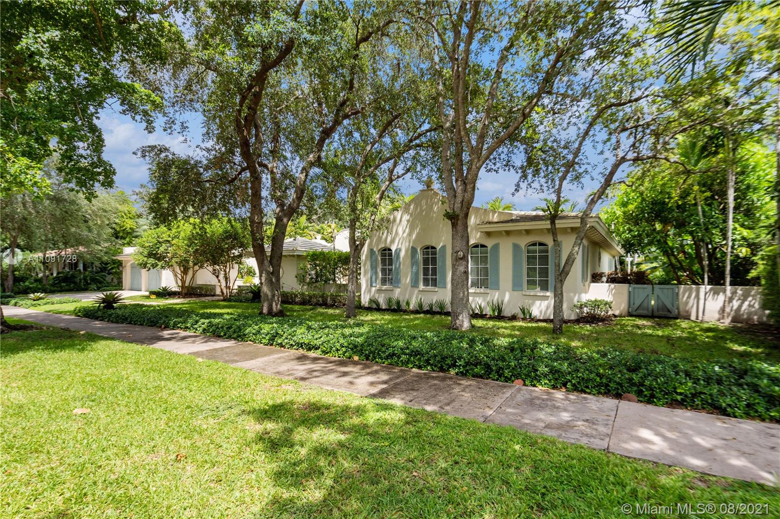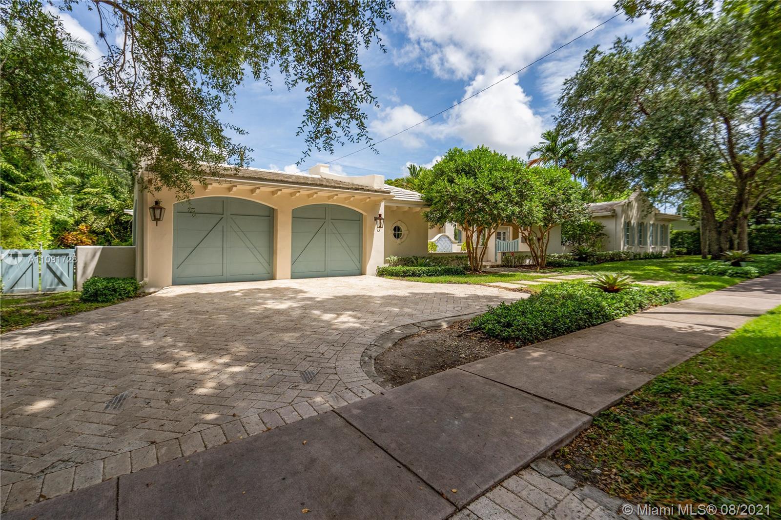 This stunning residence sits on a 15,000 Sq.Ft lot, rare to find in the Gables!! Beautifully designed with vaulted ceilings in the living room featuring a wood burning fire place. Tumbled Jerusalem Marble & hard wood floors. Open format kitchen with lots of cabinetry and storage space. Natural light in every room with impact glass windows, salt water pool. Great location on a beautiful tree lined street near Merrie Christmas Park!