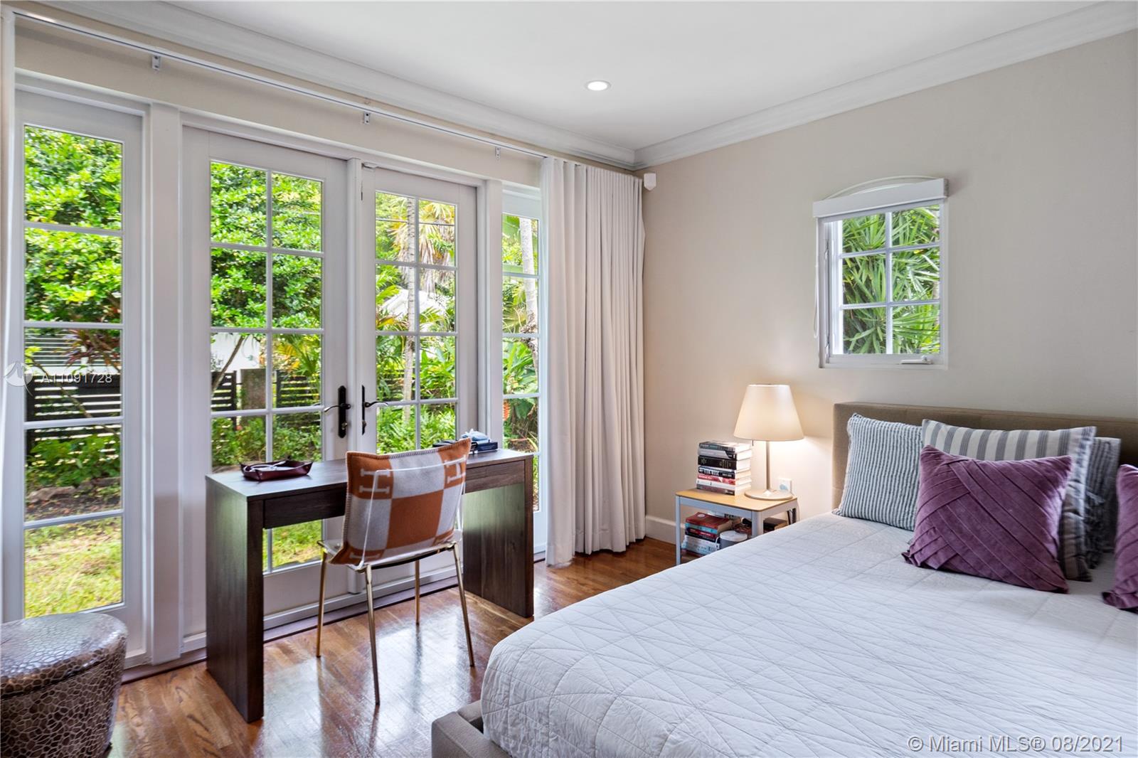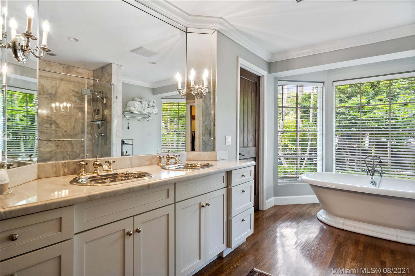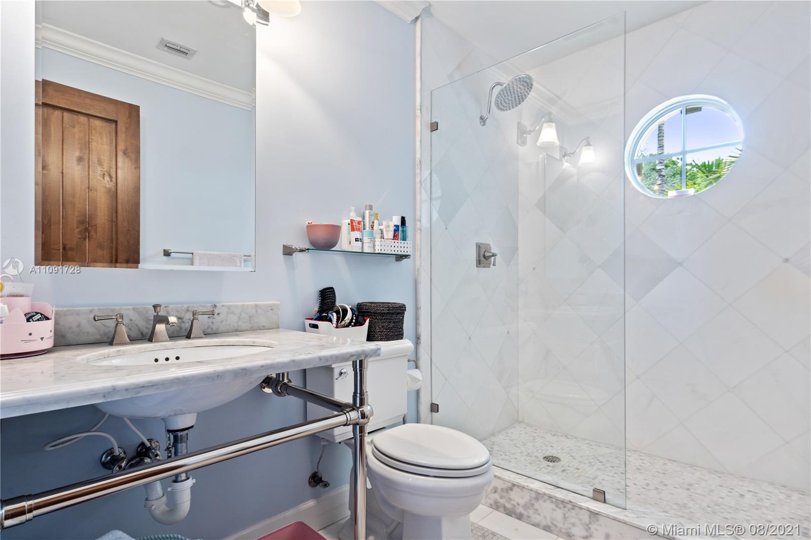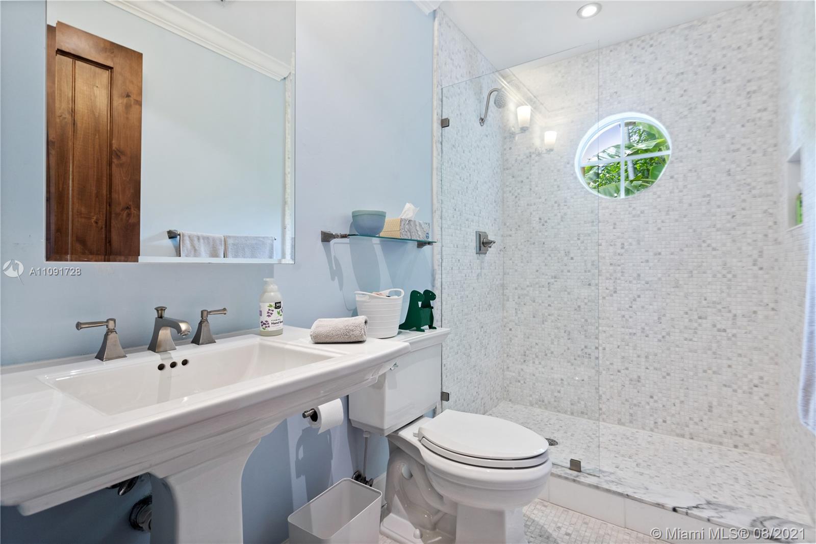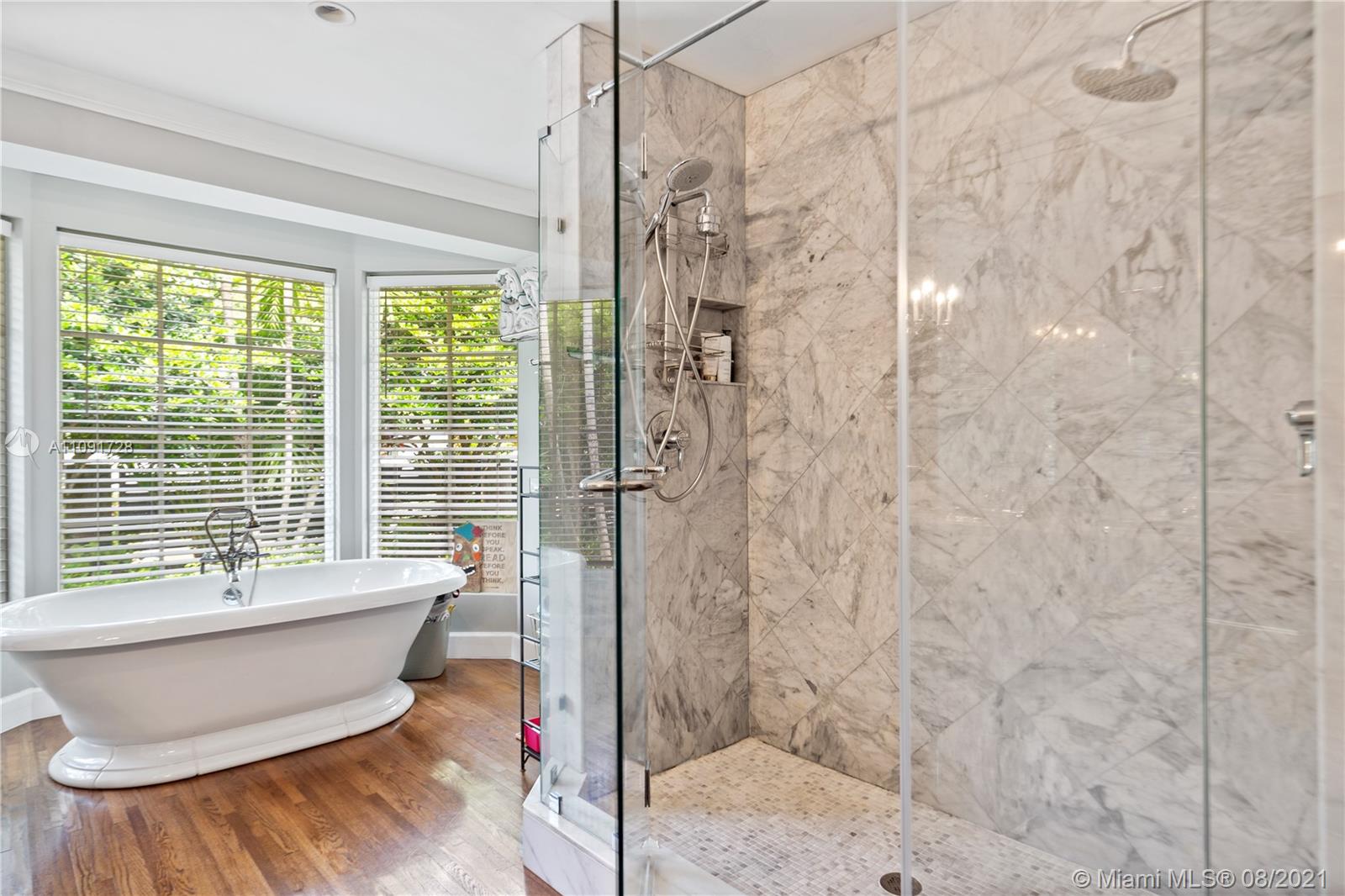 This stunning residence sits on a 15,000 Sq.Ft lot, rare to find in the Gables!! Beautifully designed with vaulted ceilings in the living room featuring a wood burning fire place. Tumbled Jerusalem Marble & hard wood floors. Open format kitchen with lots of cabinetry and storage space. Natural light in every room with impact glass windows, salt water pool. Great location on a beautiful tree lined street near Merrie Christmas Park!