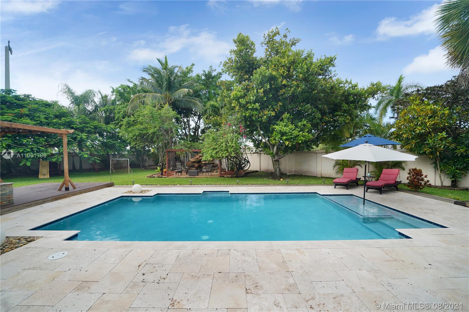 Paradise in the Estates of Pembroke Shores, this Estate pool home is truly one of a kind. This 4 bed 3 bath stunner is perfect for entertaining with its open floor plan and 13ft volume ceilings. New/newer SS dishwasher, microwave and refrigerator. New 5-ton AC unit, newer washer and dryer, high impact entry French doors, accordion shutter throughout. It is move in ready. Now prepare yourself to be taken away to the tropics! This oversized lot, one of the largest in the area, boasts a 16x30 custom pool, travertine flooring, 2 custom wood sun decks, a Zen pergola sitting area with working stone waterfall and numerous fruit trees including, bananas, coconuts, papaya, mangos and avocado. Conveniently located near I75, The shoppes at Pembroke Gardens, major shopping and entertainment.