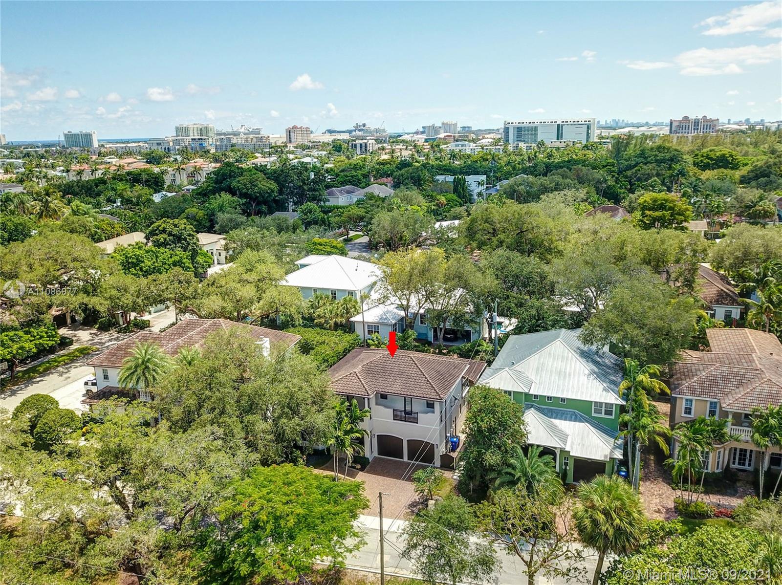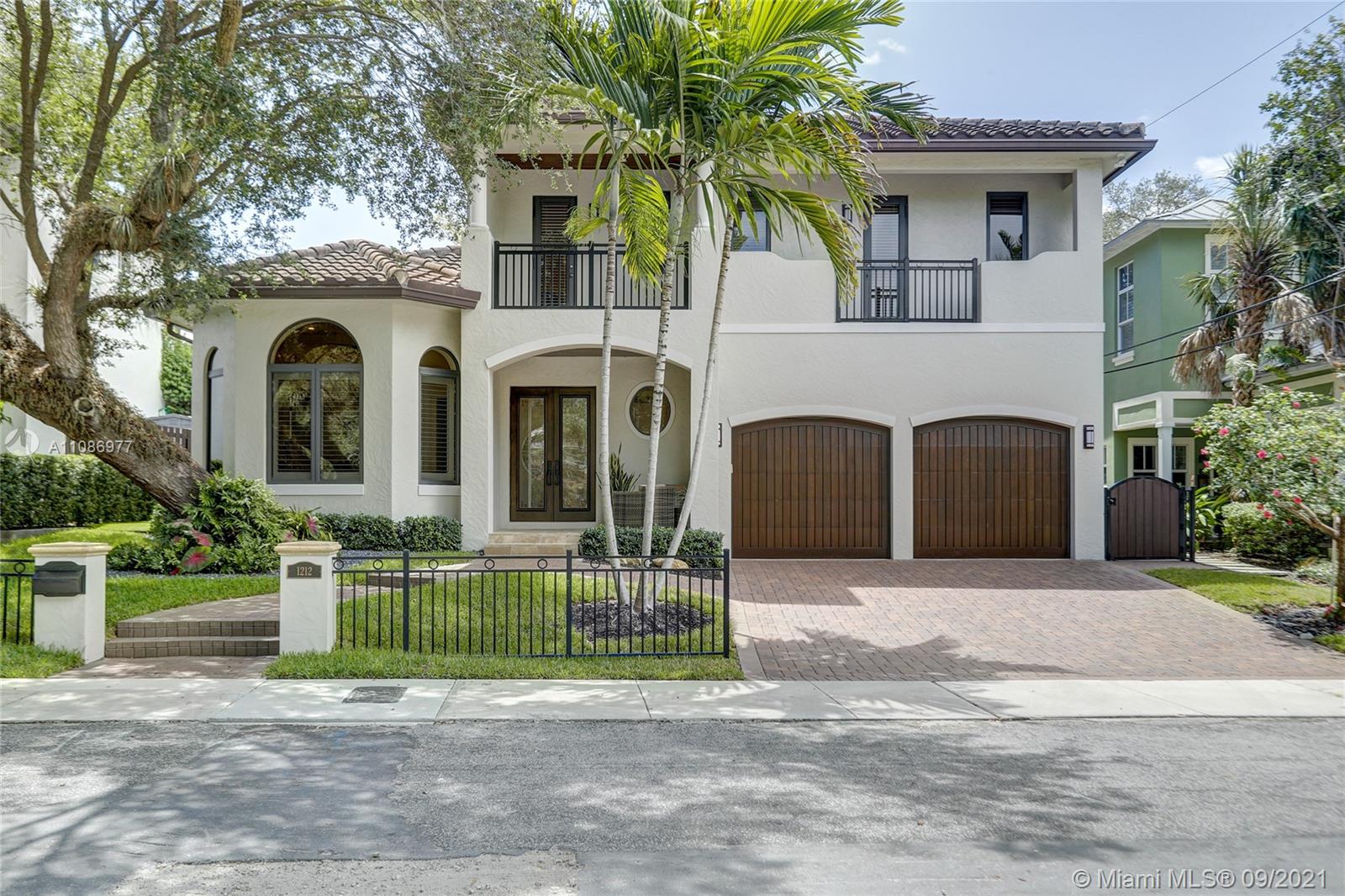 Located in Historic Rio Vista, built in '15 by luxury builder, Gulf & award-winning architect Art Bengochea, this tropically landscaped elegant, open concept home will check all your boxes. The chef's kitchen w/ gas cooking, double oven, custom wood cabinets, center island, wine cooler & counter seating is ideal for entertaining. Primary retreat w/ two custom closets & spa bath w/ tub & shower + 1st floor office/guest suite. Porcelain flooring downstairs, hardwoods up, where two oversized bedrooms w/ jack & jill bath w/ marble vanity share a large balcony overlooking downtown skyline. Impact windows & doors, volume ceilings throughout. Private fenced yard w/ natural gas summer kitchen. Perfectly located near newly redesigned Lauderdale Yacht Club, Downtown, Las Olas, Beaches & Airport.