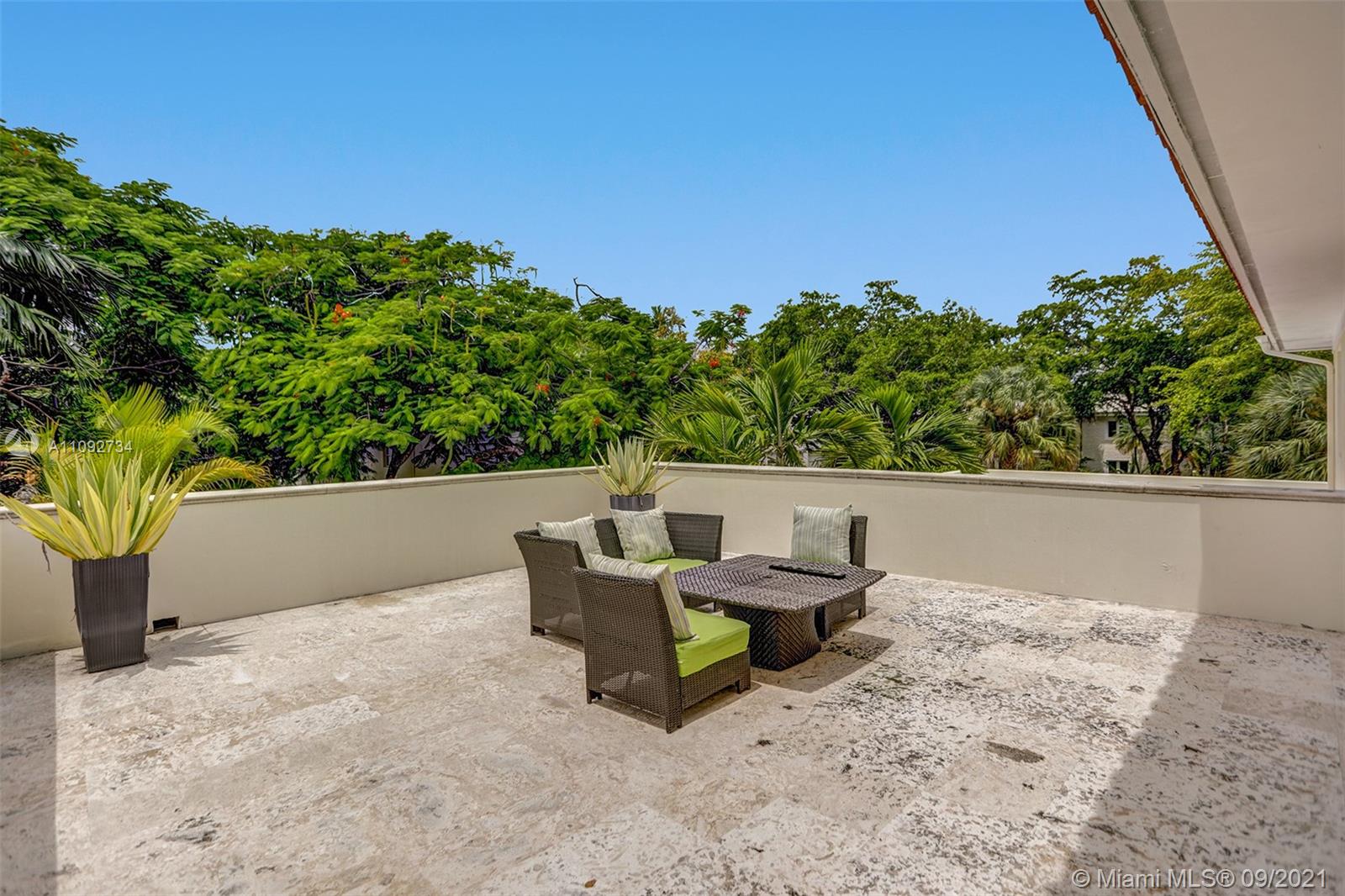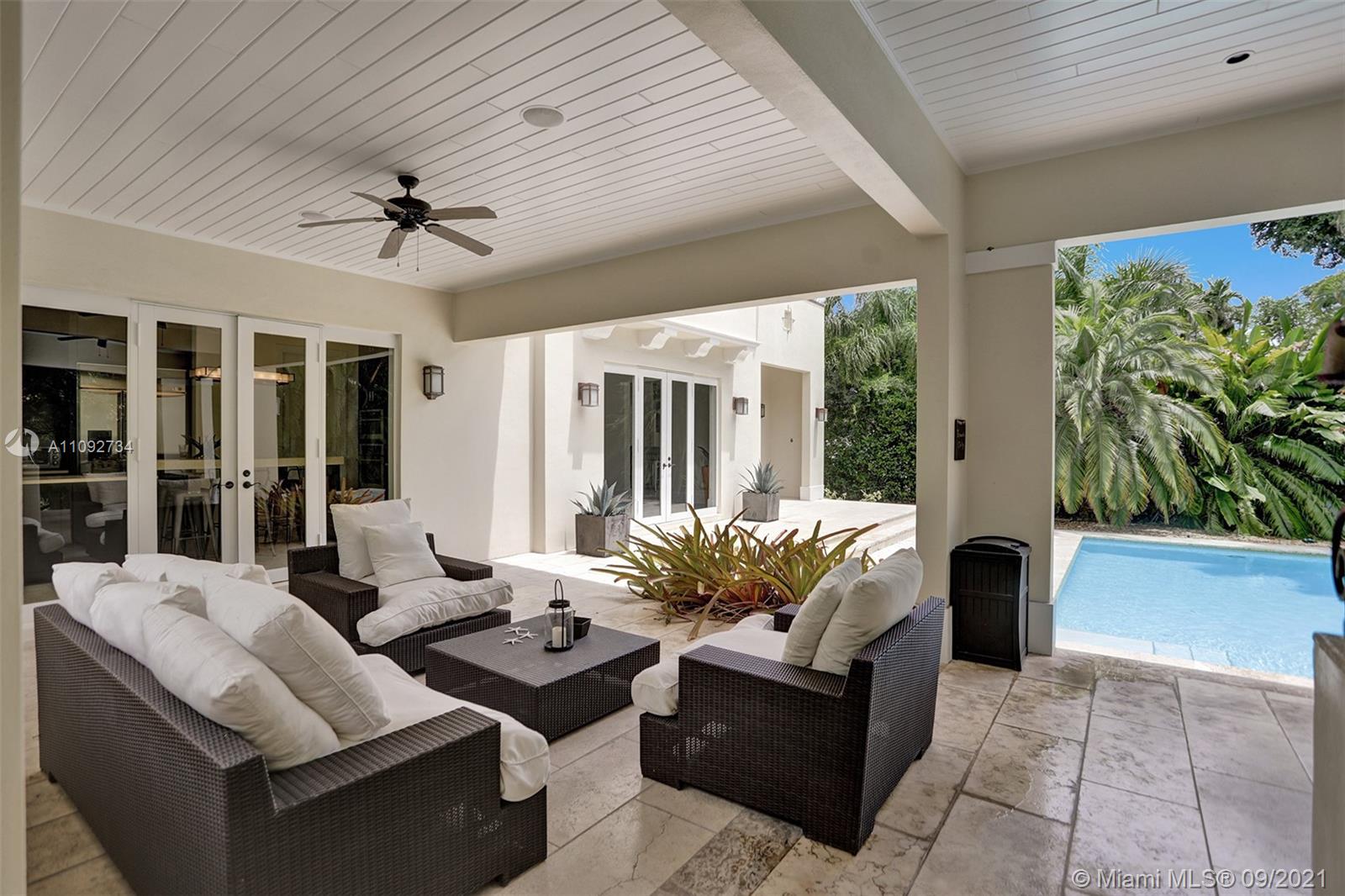 Stunning two-story home built in 2008, in the heart of Coral Gables designed to entertain! Home features an open concept floor plan with spacious areas & high ceilings, allowing plenty of natural light throughout. Relax under the covered terrace, with built-in grill & full cabana bath, and enjoy the lush landscaped backyard and sparkling pool. Modern kitchen with plenty of cabinet space & SS appliances. Home features 5 bedrooms + den/office/6th bedroom, all with en-suite bathrooms. The 2nd floor encompasses 3 generous size bedrooms & master suite with a large walk-in closet & private terrace overlooking the pool. Tons of storage, 2-car garage, all impact windows/doors, plantation shutters and more. Move-in ready! Near everything Coral Gables has to offer & only 15 minutes from MIA Airport.