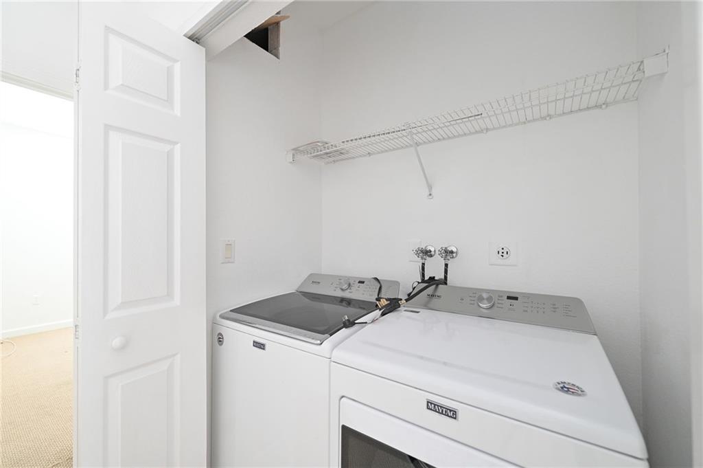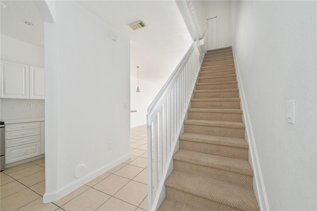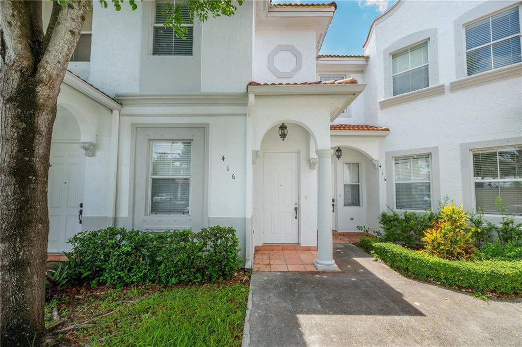 Spacious, move-in ready 2/2.5 townhome is waiting for you to make it your own! This is great as your personal residence or if you're investment minded, the association has no rental restrictions so you can start leasing it out immediately. Attractive Mediterranean style exterior with covered front portch welcomes you. Abundant natural light enhances the tile floors throughout the main level and baths. Carpeting blankets the stairs and both bedrooms. All appliances plus washer/dryer are included. Relax on your private fenced in paver patio. There is one assigned owners and 2 visitors parking spaces. Community amenities include gated entry, 24 hour security plus community pool and gym.