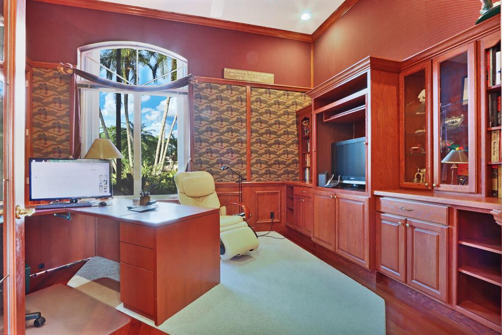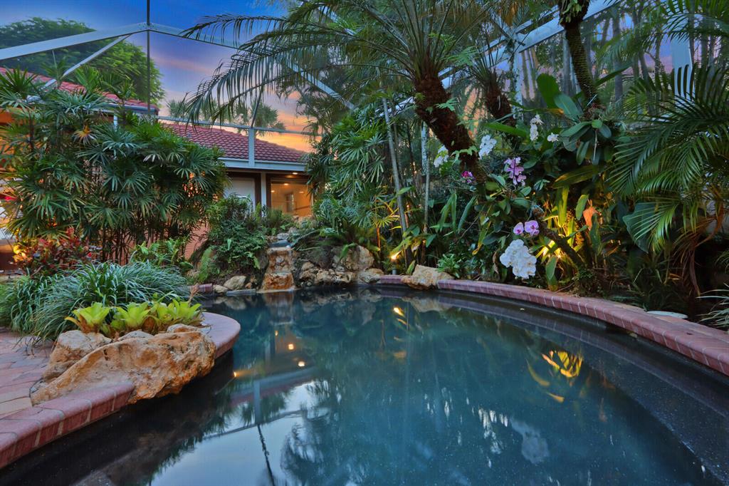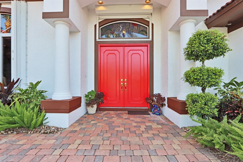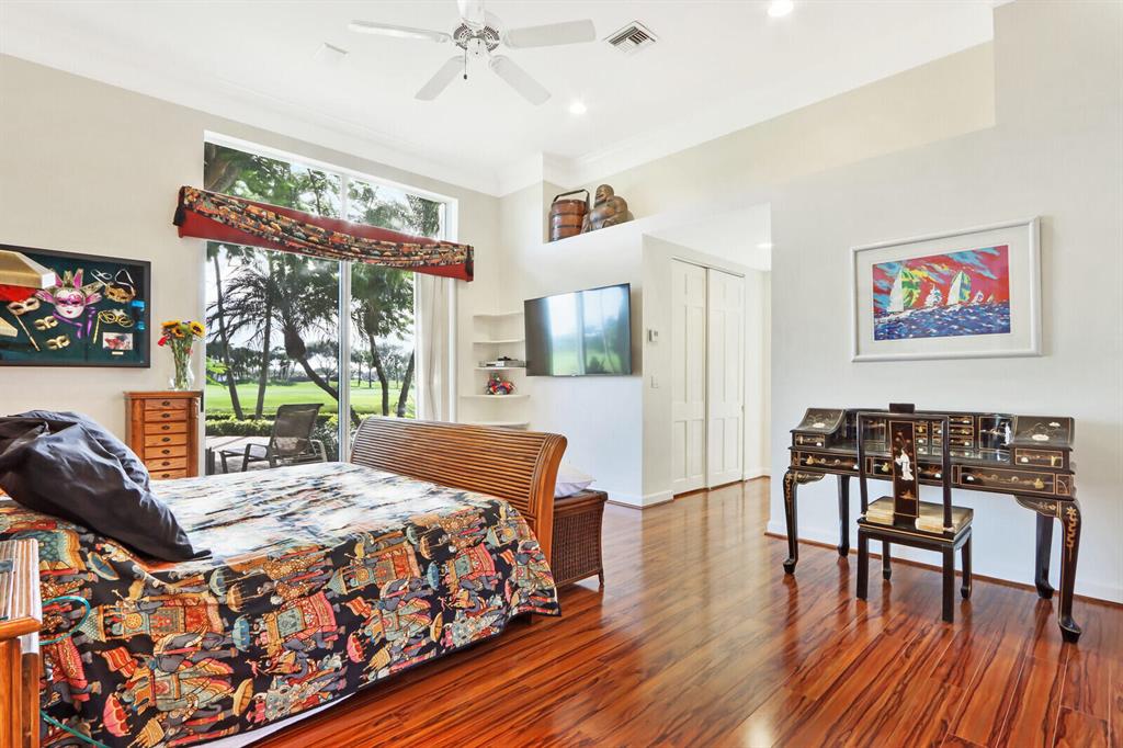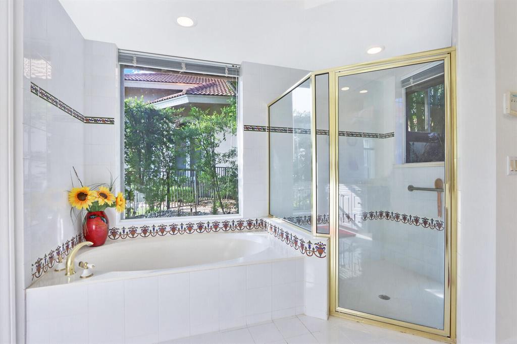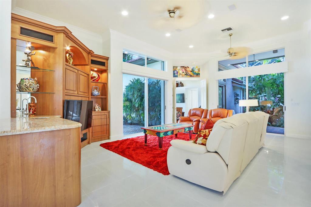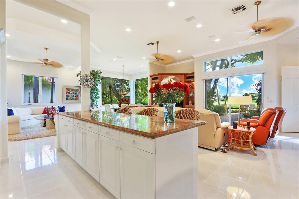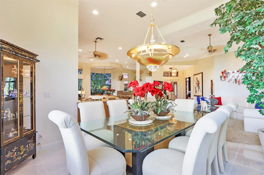 With over 100 feet of premium water frontage, this custom estate home offers a unique and rare configuration: A courtyard home with a great room floor plan. This 3BR/3.5BA+Den includes a PRIVATE GUEST HOUSE and is located on a premium water and golf lot in Herongate, Ibis's original premier builder's street. Overlooking the 18th hole of the Nicklaus-designed Heritage course, this home features the best of both worlds: Panoramic vistas of water and golf and the pool and spa within its own private oasis. The SW exposure in the rear allows you to enjoy fabulous sunset views from the oversized rear patio. Serene and tranquil, the separate, fully screened courtyard area houses a pool, spa and summer kitchen--opening up to the private guest house.