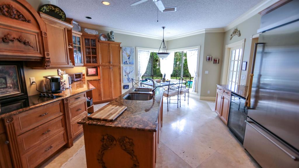 This captivating single family home is located in Spanish River Land with 4 bedrooms, 3.5 bathrooms and a large 3 car garage. The property is a 2 story tropical paradise and is just one lot from the intracoastal, walking distance to the beach, shops and restaurants! This property features 4,492 square feet under air, soaring 19 foot ceilings in the living room with fireplace and wet bar. The beautiful dining room has expansive 10 foot ceilings. Enjoy the travertine marble throughout the ground floor. This lovely kitchen is appointed with granite countertops, new stainless-steel appliances, including a double oven, Sub-Zero refrigerator and wine refrigerator. The beautiful master suite opens up to the balcony that gives a view over the pool area.