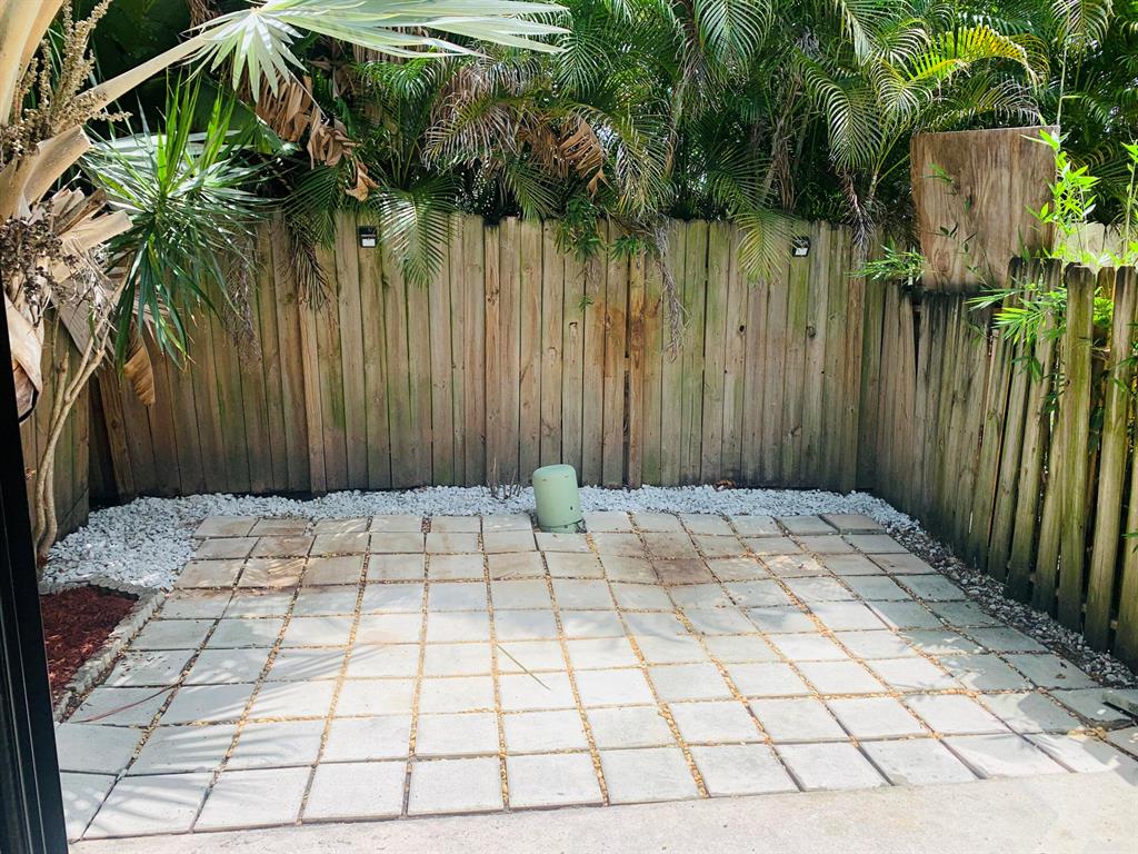 Gorgeous, tastefully updated townhome with all impact windows and doors in East Pompano close to Federal Hwy and shopping, beaches, and restaurants. 2 bedroom, 2.5 baths. Neutral porcelain tile set in diamond pattern throughout first floor, dark wood cabinets in kitchen with light countertops, stainless steel appliances, new refrigerator, subway tile backsplash, impact sliding glass doors in kitchen to private front patio, nice half bath on first floor, private, fully fenced back patio, laminate wood floors upstairs, brand new carpet on the stairs, updated master bath with dual sinks and frameless shower door, new roof installed 5/31/19. A/C 12/30/16, water heater 1/13/18. 2 designated parking spaces right in front of front door. All measurements are approximate.