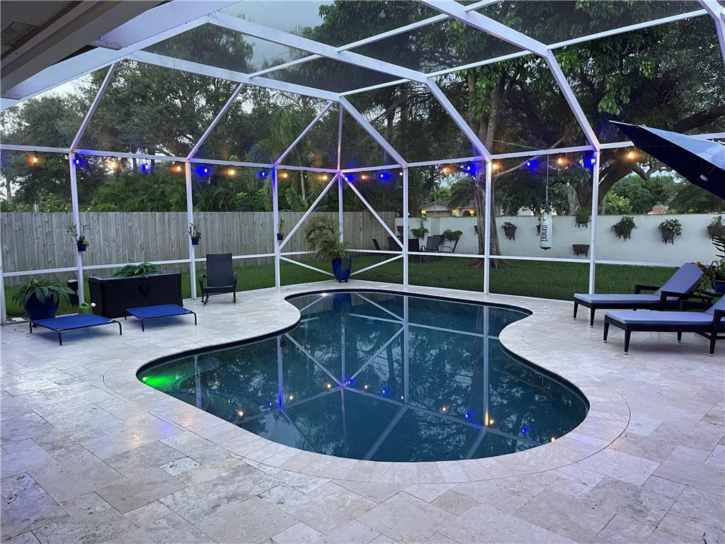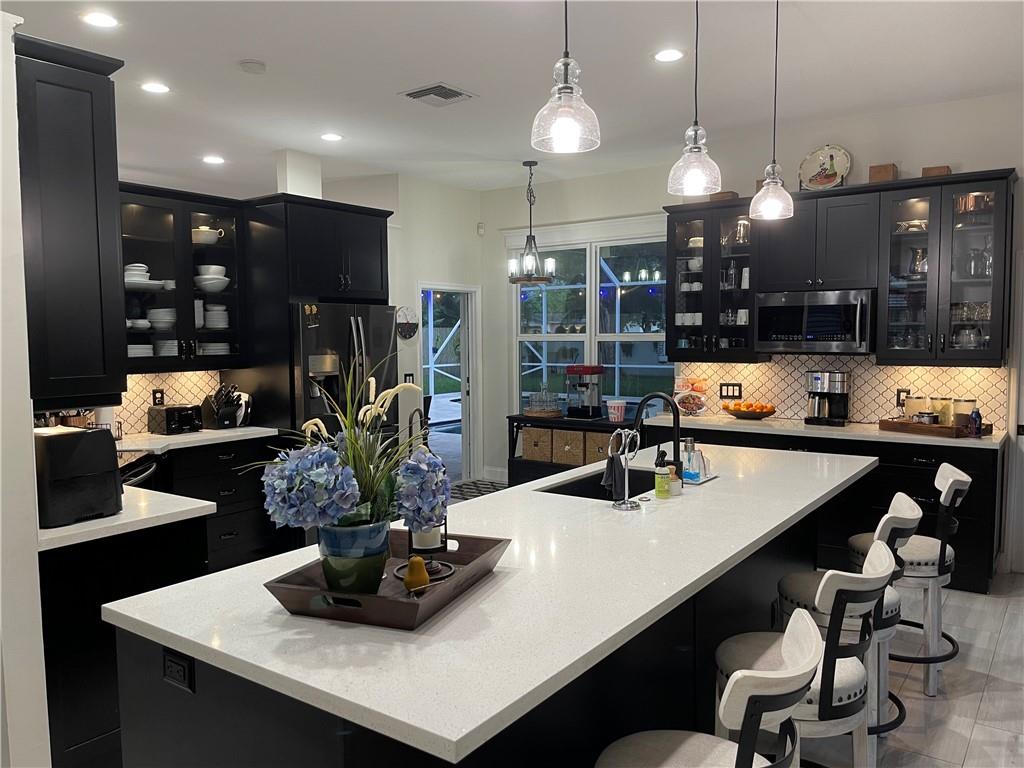 Stunning upgraded 5 bedroom, 2 1/2 bath ranch-style home in gated community. Screened in back patio and salt water pool. Fenced in backyard. Cul-de-sac lot with lighted tennis court, playground and A- rated schools, with low quarterly HOA fees. New Roof (Dec. 2018) and new A/C (2020). Bathrooms remodeled in 2019 - relax in the extra deep soaker tub and full body shower. Kitchen remodel 2019 - Huge 12ft island, quartz countertops, new soft-close cabinets, and black stainless steel appliances. Beautiful grey wide-format wood grain tile throughout living space. Smart Ecobee Thermostat. Surround sound wired in living room and pool. New impact sliding glass doors, windows and front door. All openings hurricane rated.