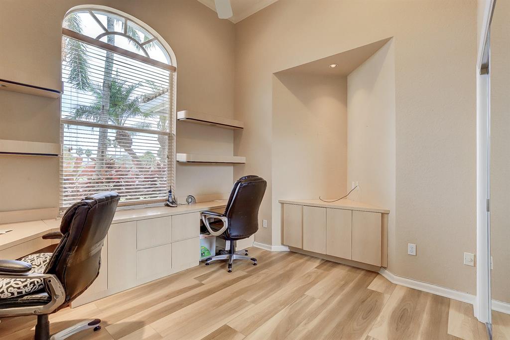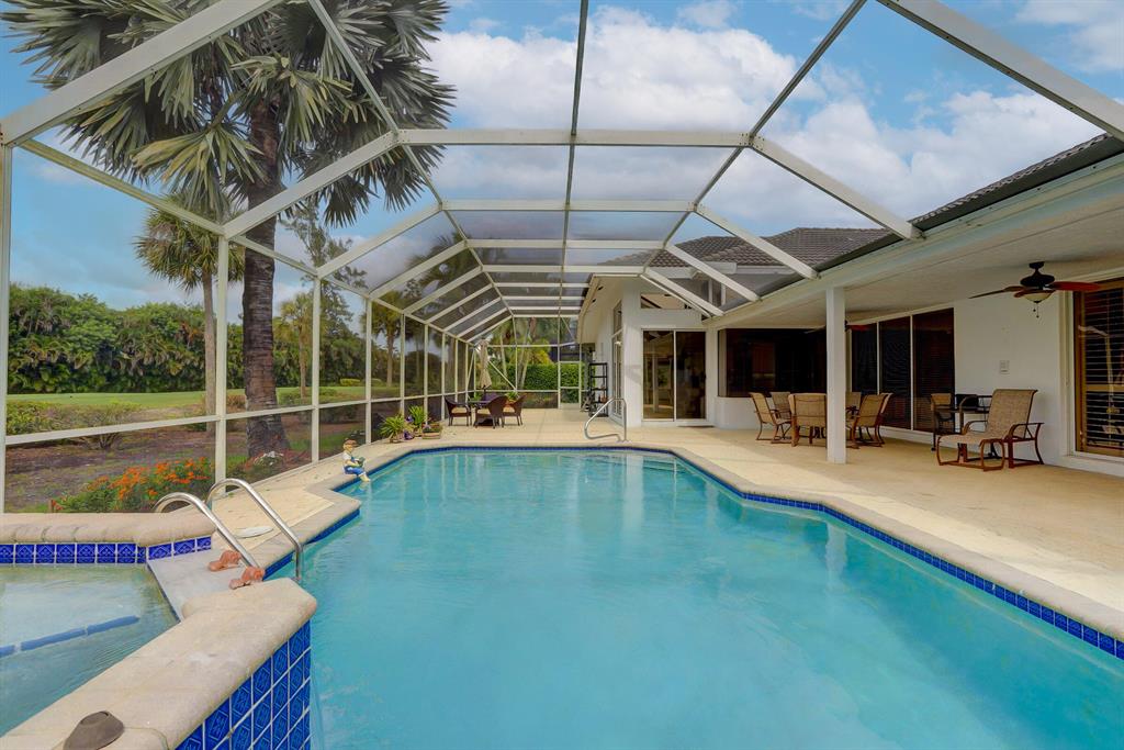 Perched on the 5th hole of Stonebridge Country Club, this spacious home offers never ending views of the golf course and lots of privacy. This 3 bedroom plus office and 3 full baths is a great lay out for family and friends to visit. The primary bedroom is off to one side and provides a get away to enjoy away from all. We can never have too much closet space and this primary bedroom closet does not disappoint... One special feature of this home is it is light and bright and cheery.... Enjoy the expansive use of sliding doors and windows to enjoy the oversized screened patio and pool area. Stonebridge Country Club offers a wonderful lifestyle... golf, tennis, pickleball, fitness center, restaurant and more... Come see and make this home your home... It is waiting for you!