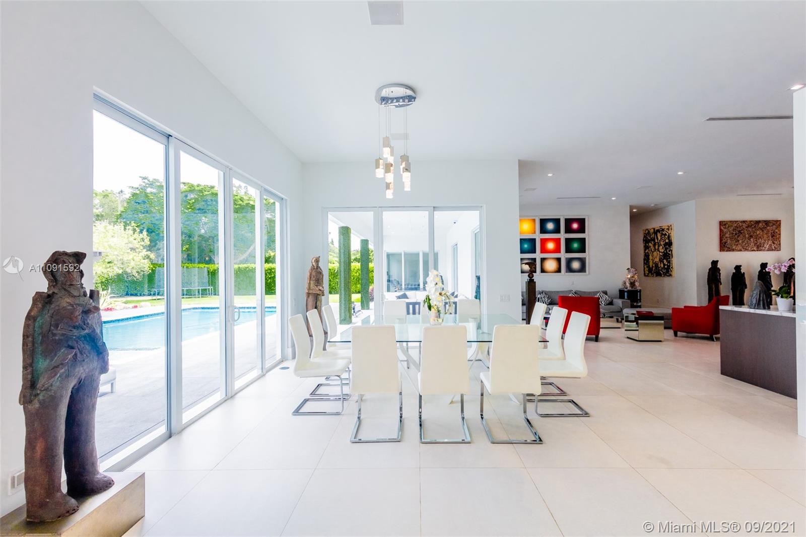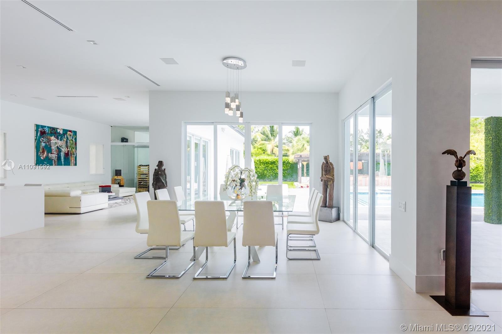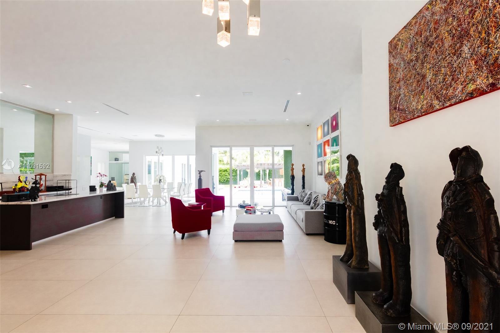 One-of-a-Kind 6,621Sq Transitional Modern Home in Pinecrest, New construction set on 38,768 Sq to enjoy spacious open living, this Estate offers itself as the perfect canvas for art. High ceilings throughout the house, Smart Home, Surround sound system. Open plan living and dinning, two family rooms one of them can be used as an office or game room, Full Open Bar with marble counter top, Open Kitchen with top of the line appliances and custom gabinetes, Wine Cellar. Featuring 5 bedrooms and 6 baths, oversized Master bedroom, his/her custom walk-in closet, large master bathroom. The covered terrace and pool area create a wonderful space for entertainment, Estate of the art BBQ Area, Industrial hurricane proof garage doors, enclosed 6 car garage. Luxury Florida Lifestyle inside & Out.