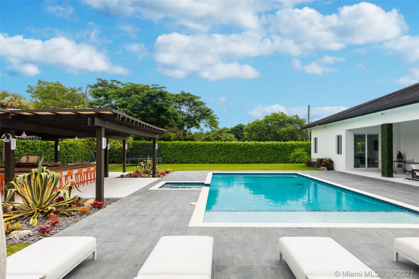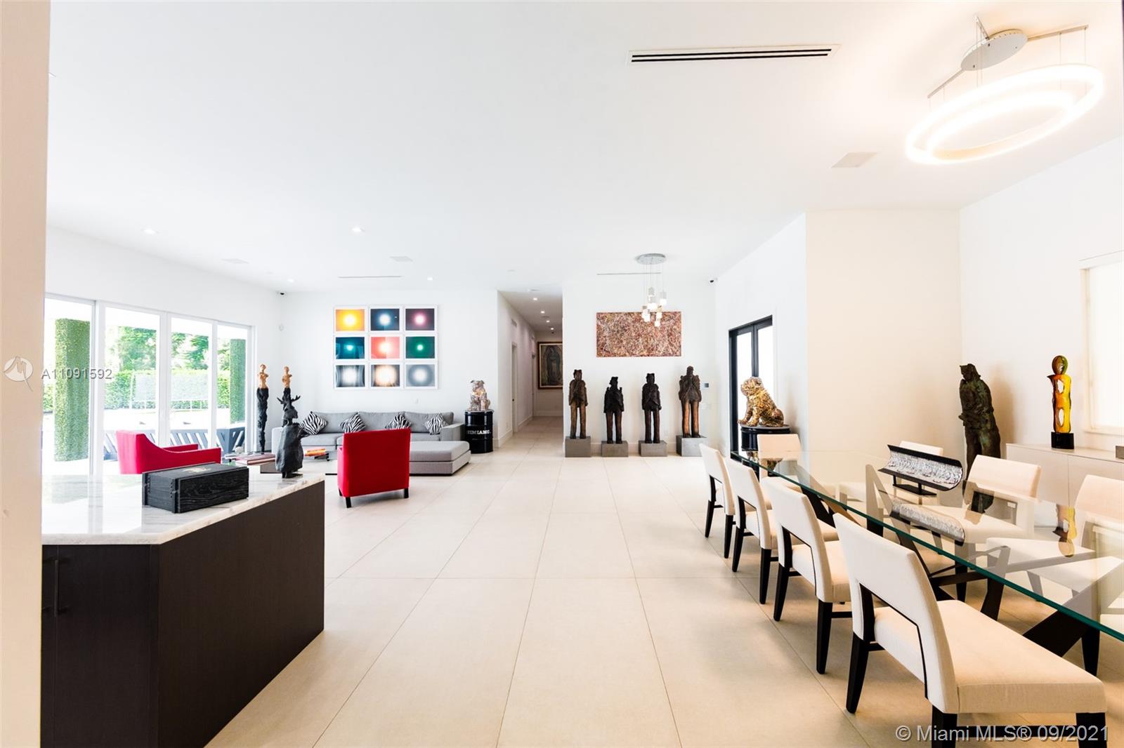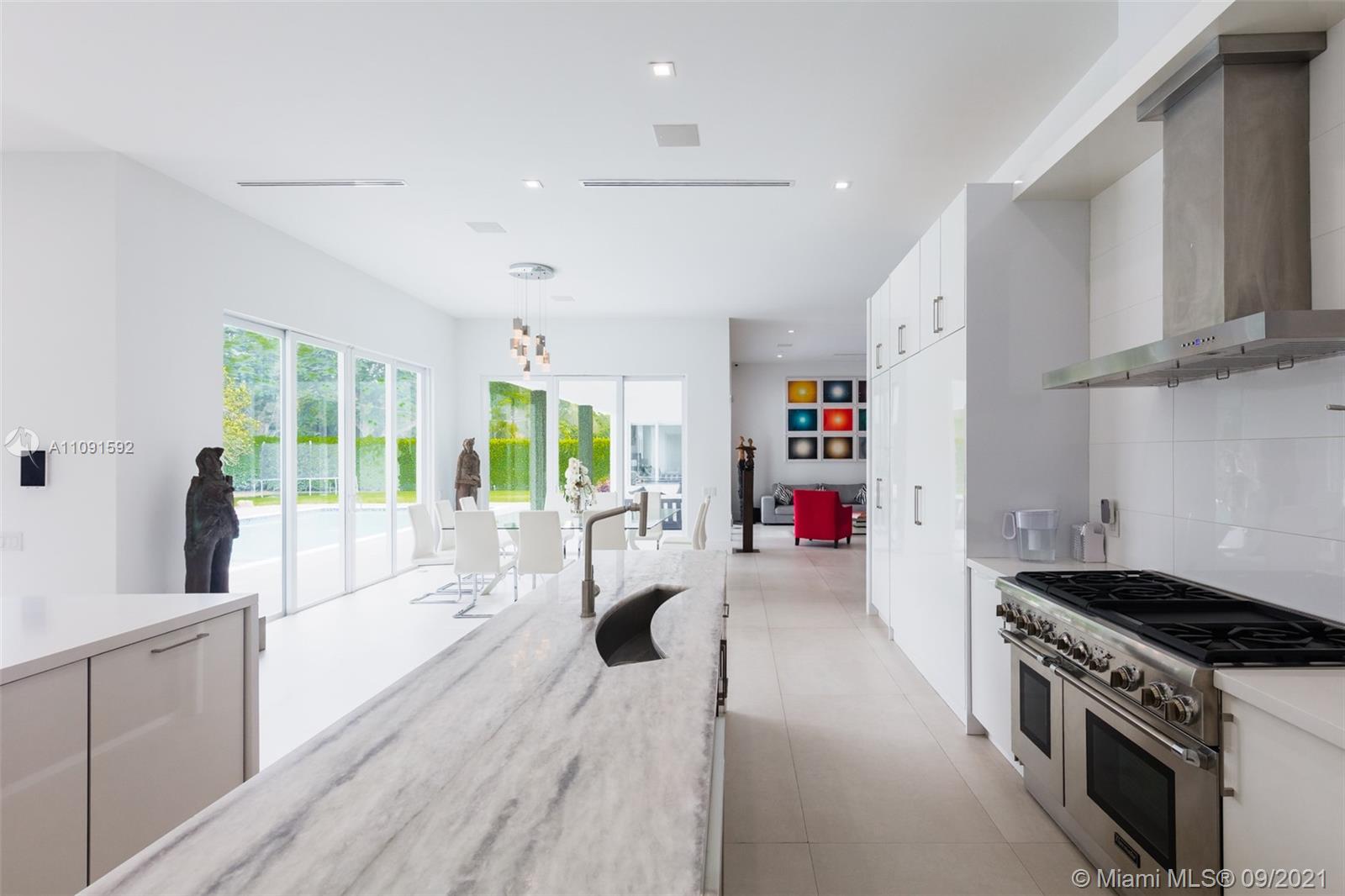 One-of-a-Kind 6,621Sq Transitional Modern Home in Pinecrest, New construction set on 38,768 Sq to enjoy spacious open living, this Estate offers itself as the perfect canvas for art. High ceilings throughout the house, Smart Home, Surround sound system. Open plan living and dinning, two family rooms one of them can be used as an office or game room, Full Open Bar with marble counter top, Open Kitchen with top of the line appliances and custom gabinetes, Wine Cellar. Featuring 5 bedrooms and 6 baths, oversized Master bedroom, his/her custom walk-in closet, large master bathroom. The covered terrace and pool area create a wonderful space for entertainment, Estate of the art BBQ Area, Industrial hurricane proof garage doors, enclosed 6 car garage. Luxury Florida Lifestyle inside & Out.